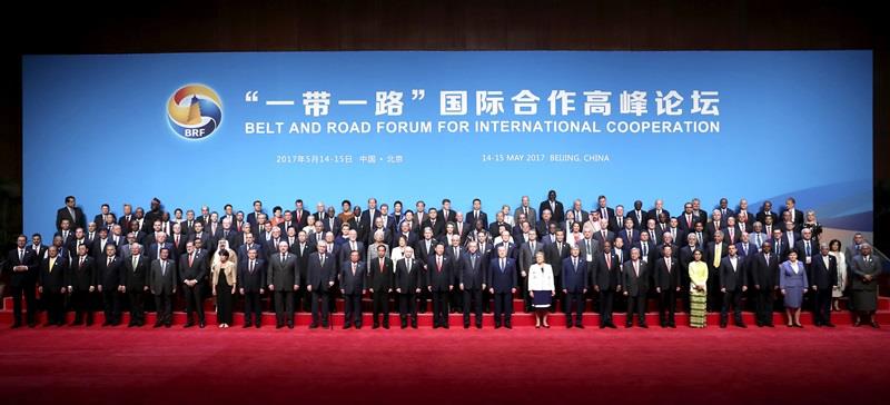 「一帶一路國際合作高峰論壇」14日在北京開幕,與會 代表合影。逾130個國家和70多個國際組織約1500名代 表出席這場論壇,包括29名國際領袖。 |