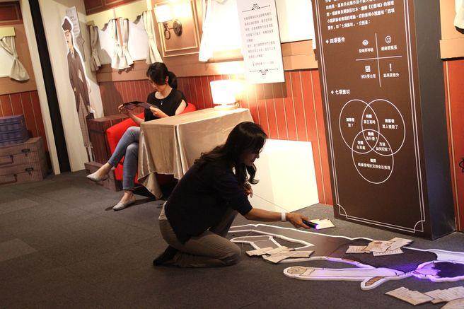 「推理文學在台灣」特展中在展場可找尋各種提示,扮演偵探。
