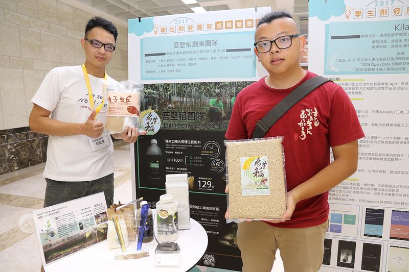 興大指出,土環系碩士班生邱凱業、陳嘉佑等人組成的「吾堅稻創業團隊」,開發強效型複合菌種的生技肥料,與實驗室等級的土壤檢測,提供農民客製化的農業管理服務。目前已與國內11位農民、1間契作商合作,合作面積為103.6公頃。