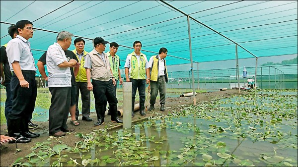 農委會主委林聰賢昨勘查葉菜災損情形。(農委會提供)