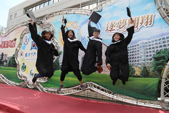 興大今舉辦畢典,畢業生歡呼慶祝畢業。(翻攝照片)