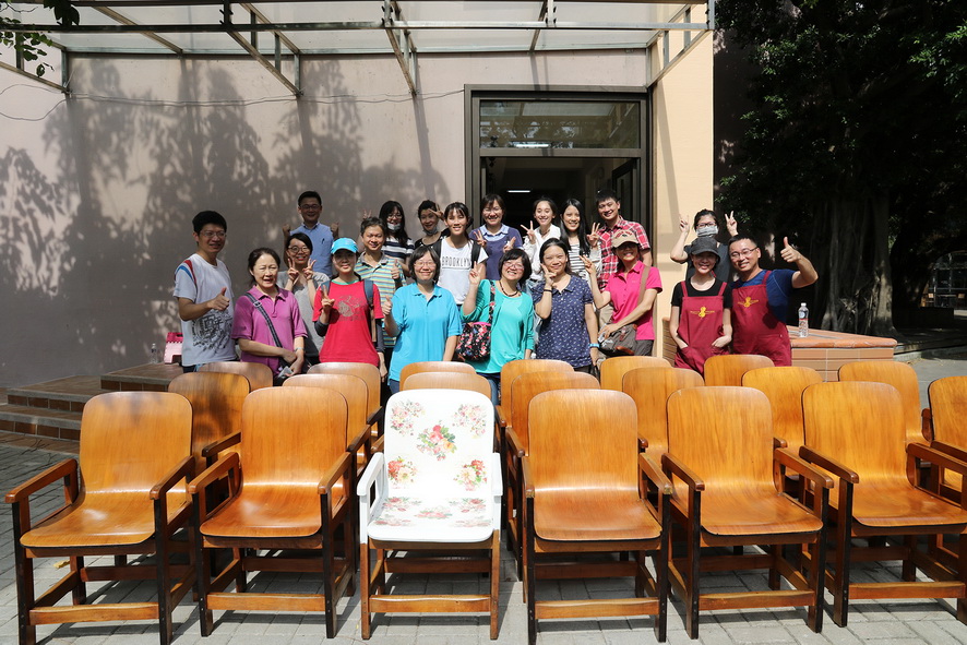 此批舊木椅使用已二十多年,原置於圖書館,後轉由學生宿舍使用,因年限悠久,表面多斑駁、部分結構已損壞,閒置已久。主辦單位從中挑選結構完好、可修復的20張木椅,開放有興趣的教職員生參與修繕。課程開放報名二天立即額滿,參與情況非常踴躍。