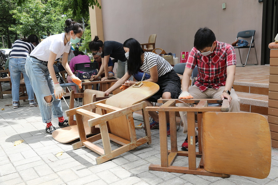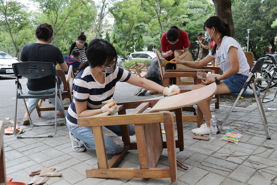 興大指出,此批舊木椅使用已20多年,原置於圖書館,後轉由學生宿舍使用,表面多斑駁、部分結構已損壞,閒置已久。主辦單位從中挑選結構完好、可修復的20張木椅,開放有興趣的教職員生參與修繕。