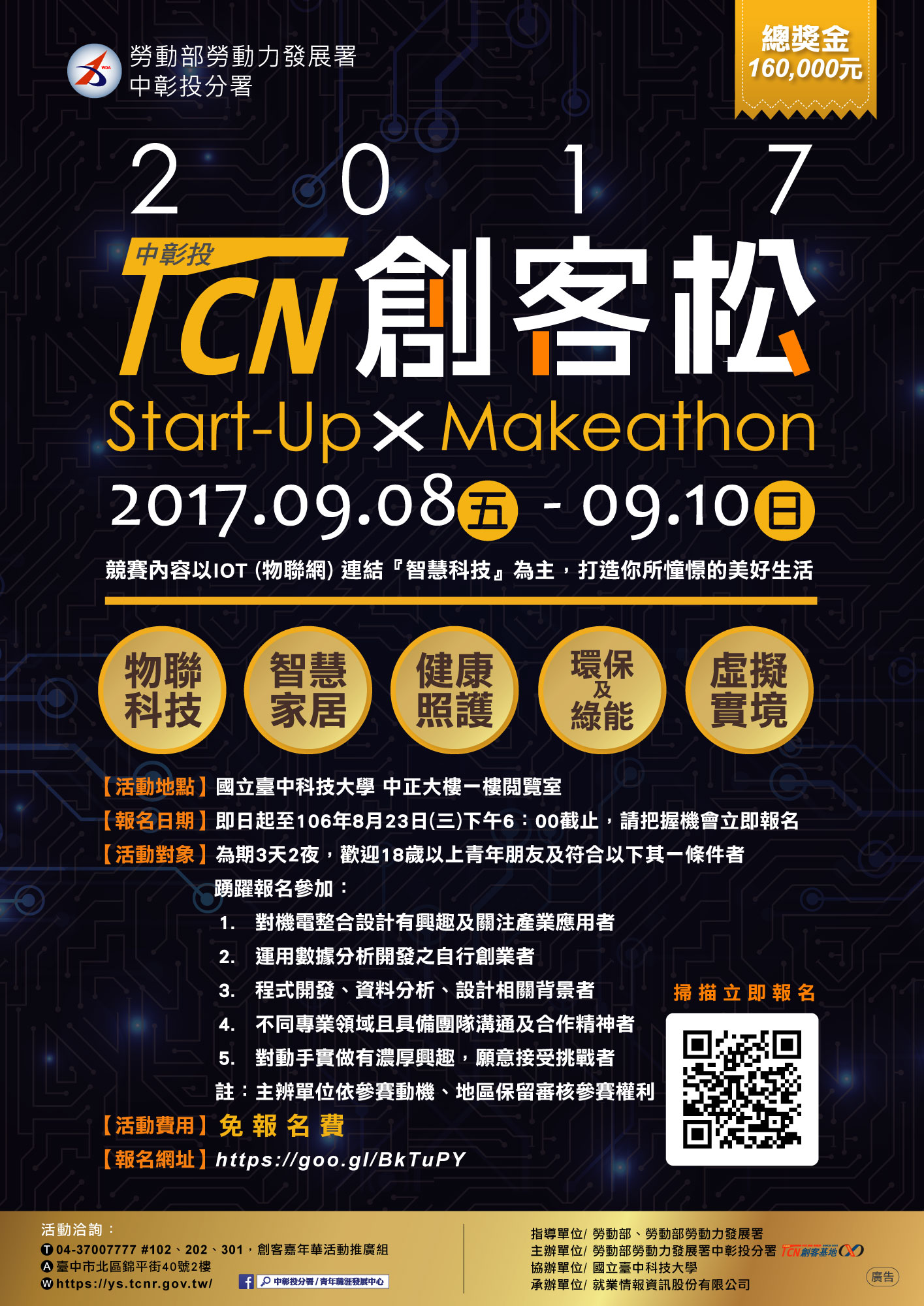 勞動部勞動力發展署中彰投分署將於今年9/08(五) - 9/10(日),辦理「2017 TCN創客松」競賽