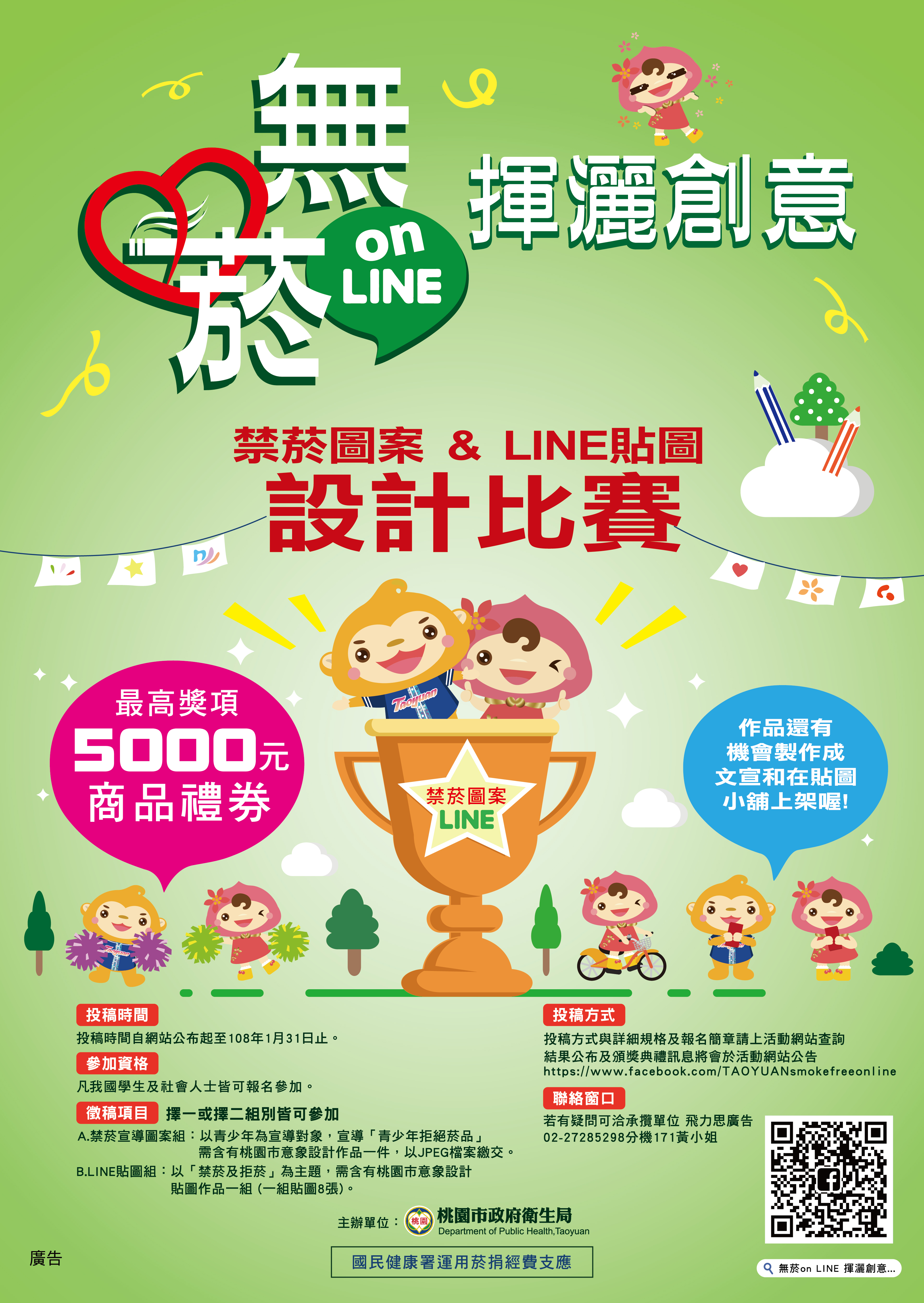 【轉知】桃園市政府衛生局辦理「無菸ON Line 揮灑創意禁菸圖案與Line貼圖設計比賽」競賽辦法簡章