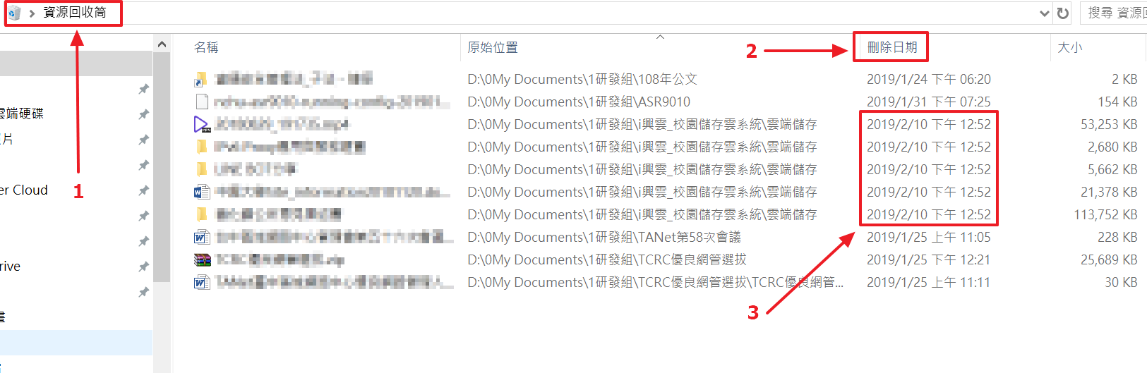 - 把檔案依照刪除日期排序