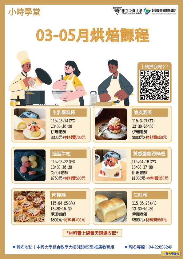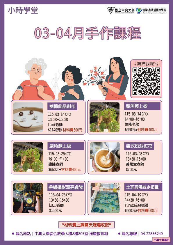 ■報名地點:中興大學創新產業暨國際學院(綜合大樓8樓805室)推廣教育組