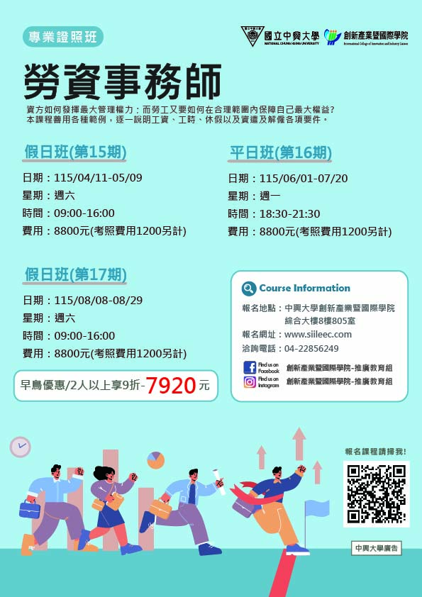 課程費用:8,800元 (早鳥優惠價/2人以上報名者享9折-7920元)