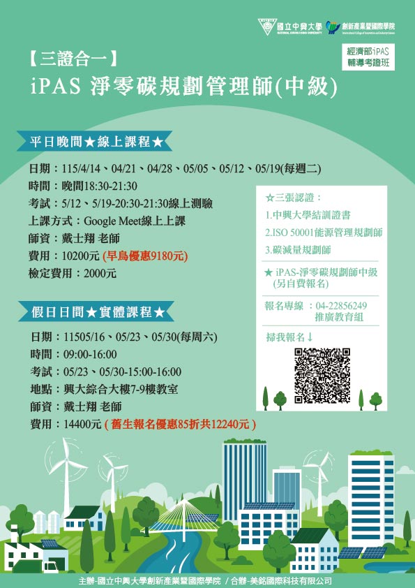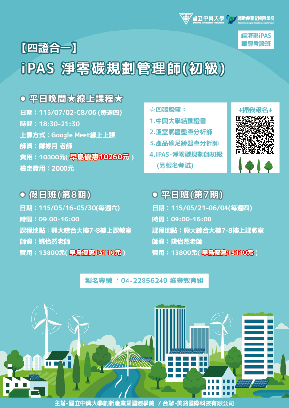 【專業證照輔導專班】 勞資事務師/iPAS 淨零碳規劃管理師/AI應用規劃師//健康管理師等