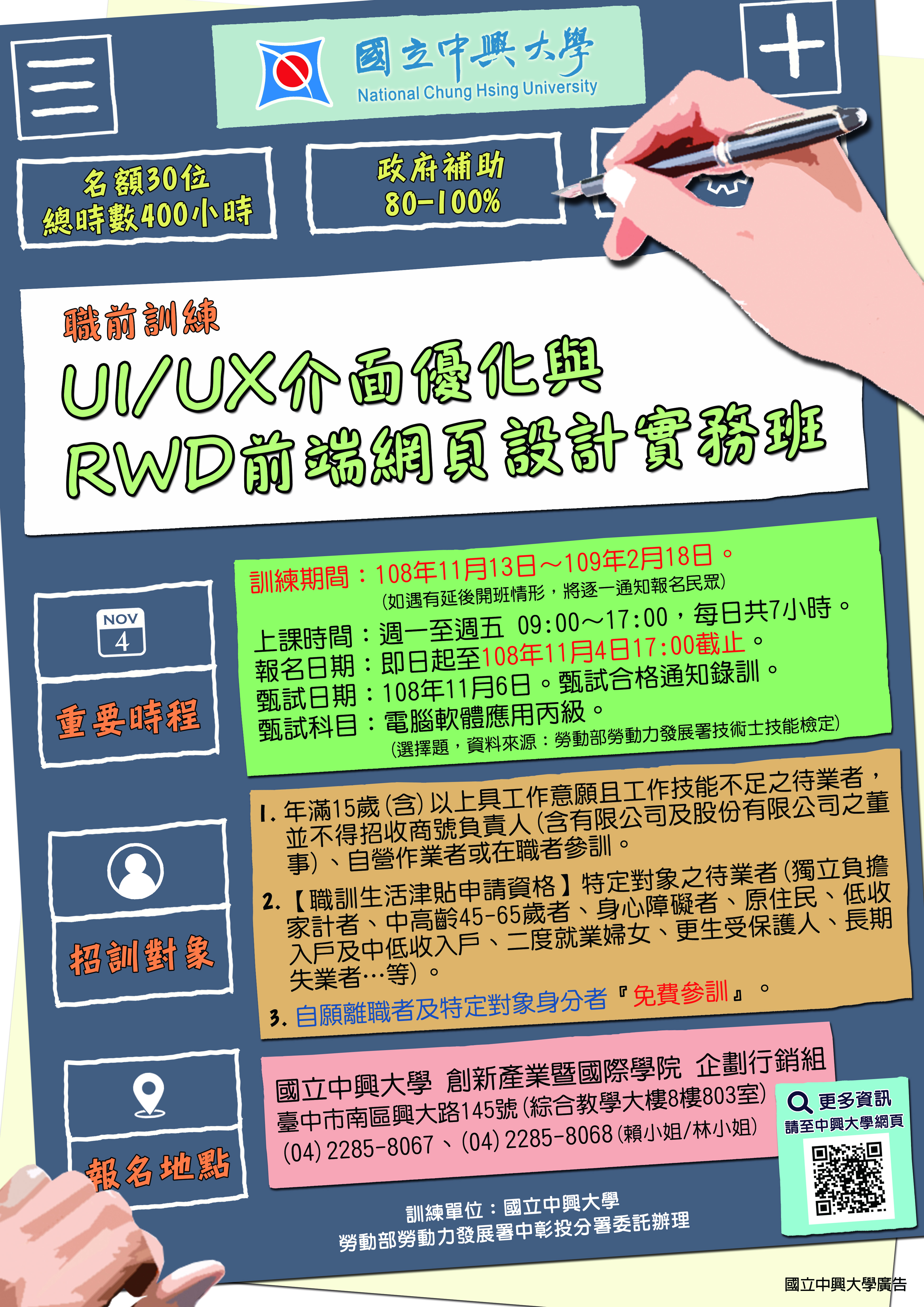【職前訓練】UI/UX介面優化與RWD前端網頁設計實務班~適合待業者及轉職者報名~