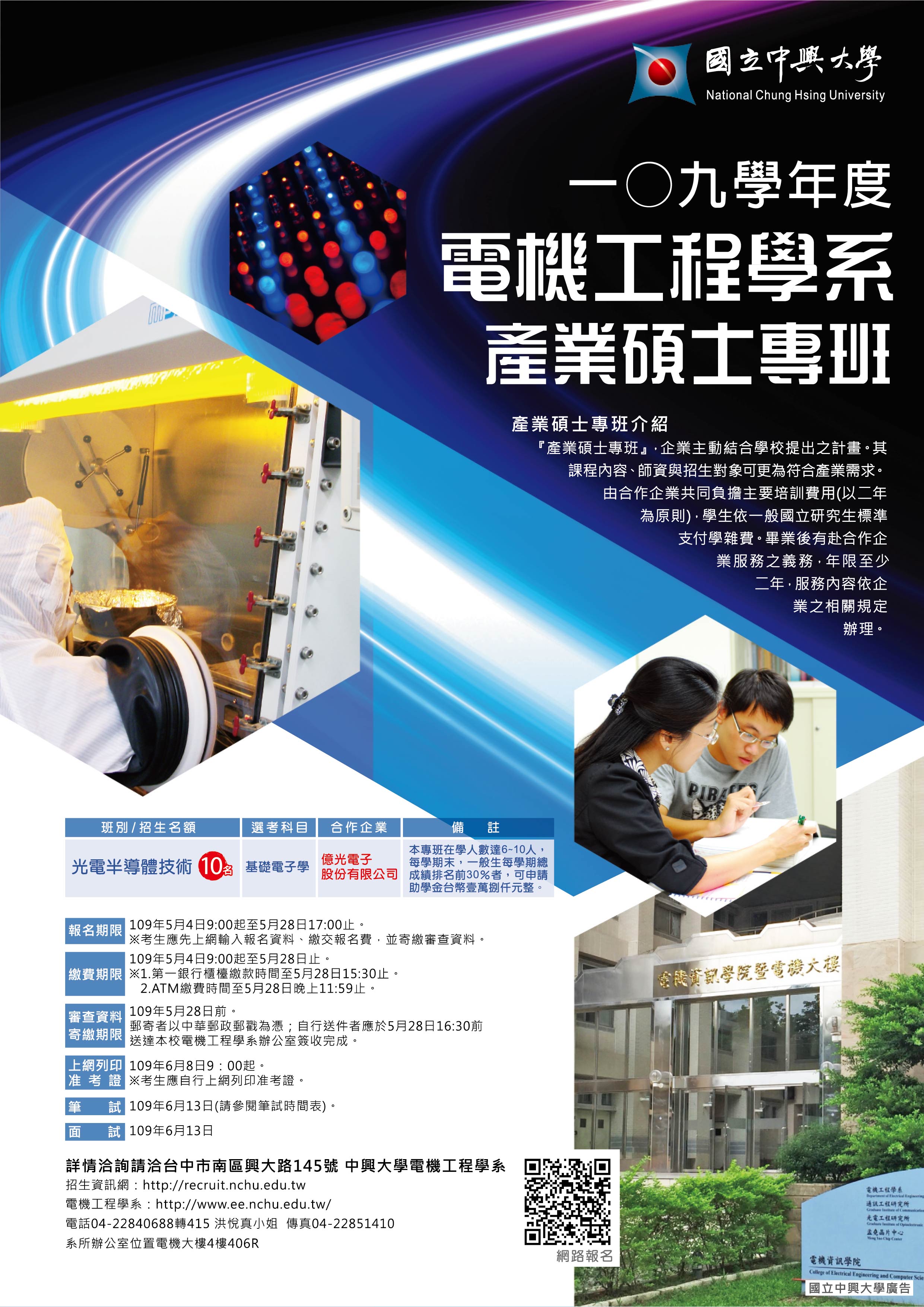 興大電機系109「產業碩士專班」招考(在學助學金+碩士學位+就業保障)