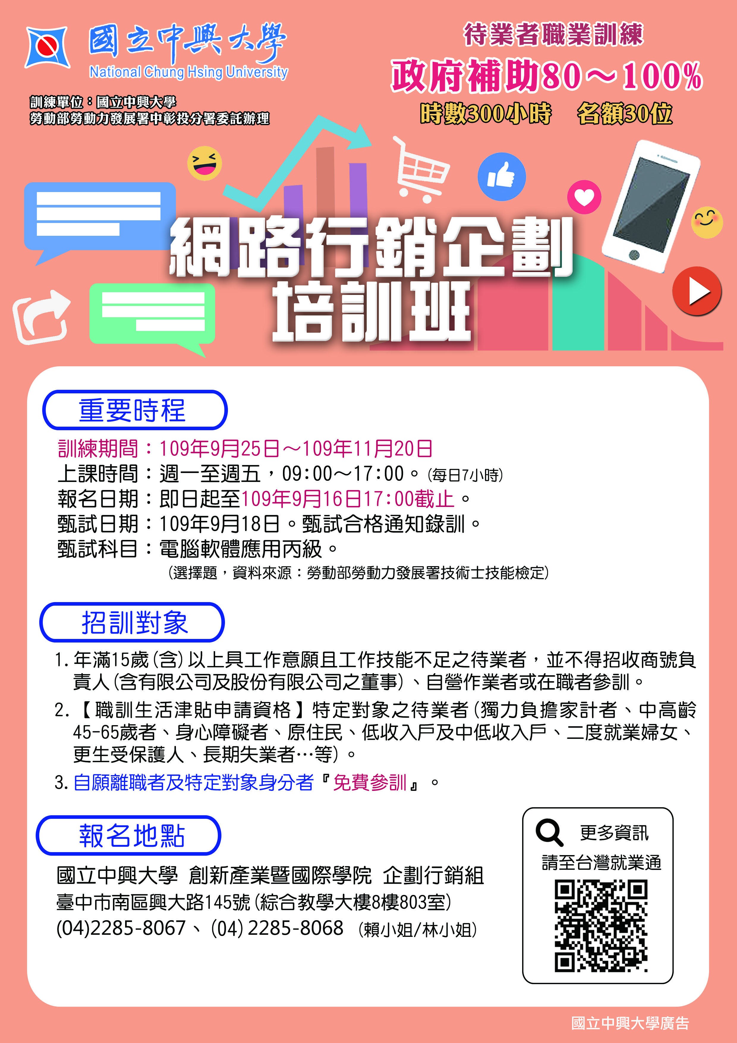 【職前訓練】網路行銷企劃培訓班~適合待業者及轉職者報名~