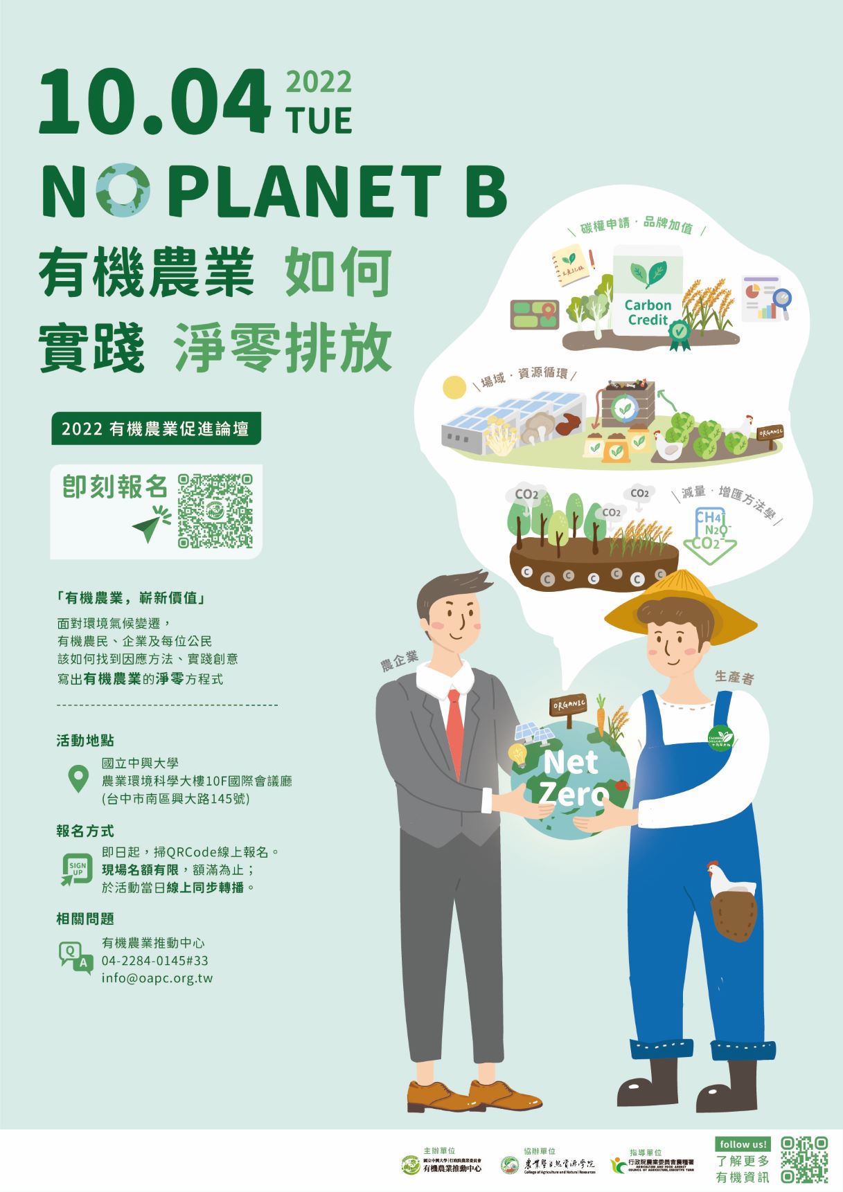 - 相關附件 2022有機論壇【NO_PLANET_B_有機農業如何實踐淨零排放】海報議程1-1.jpg 、 2022有機論壇【NO_PLANET_B_有機農業如何實踐淨零排放】海報議程2-1.jpg