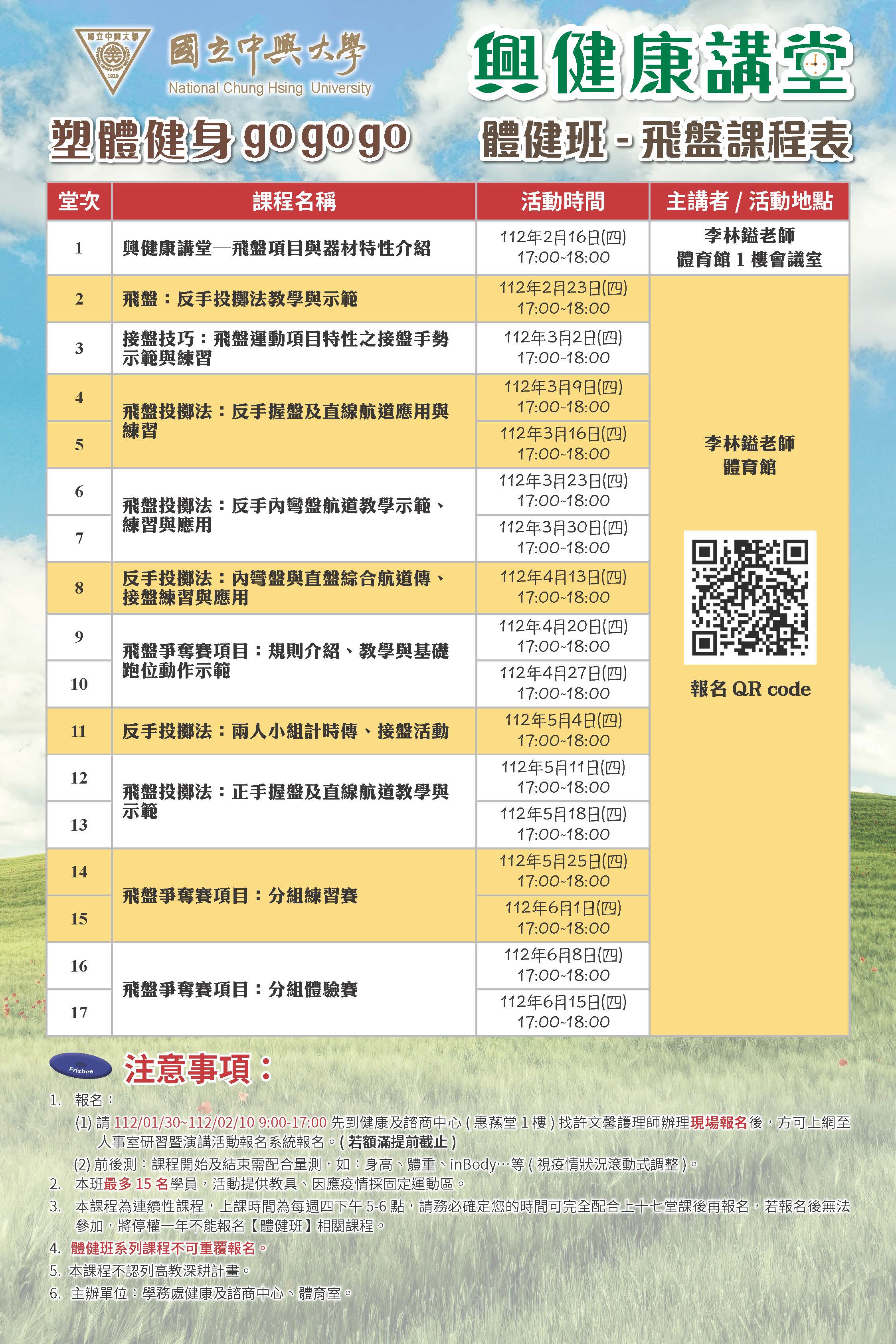 111學年度第二學期【興健康講堂】體健班系列課程