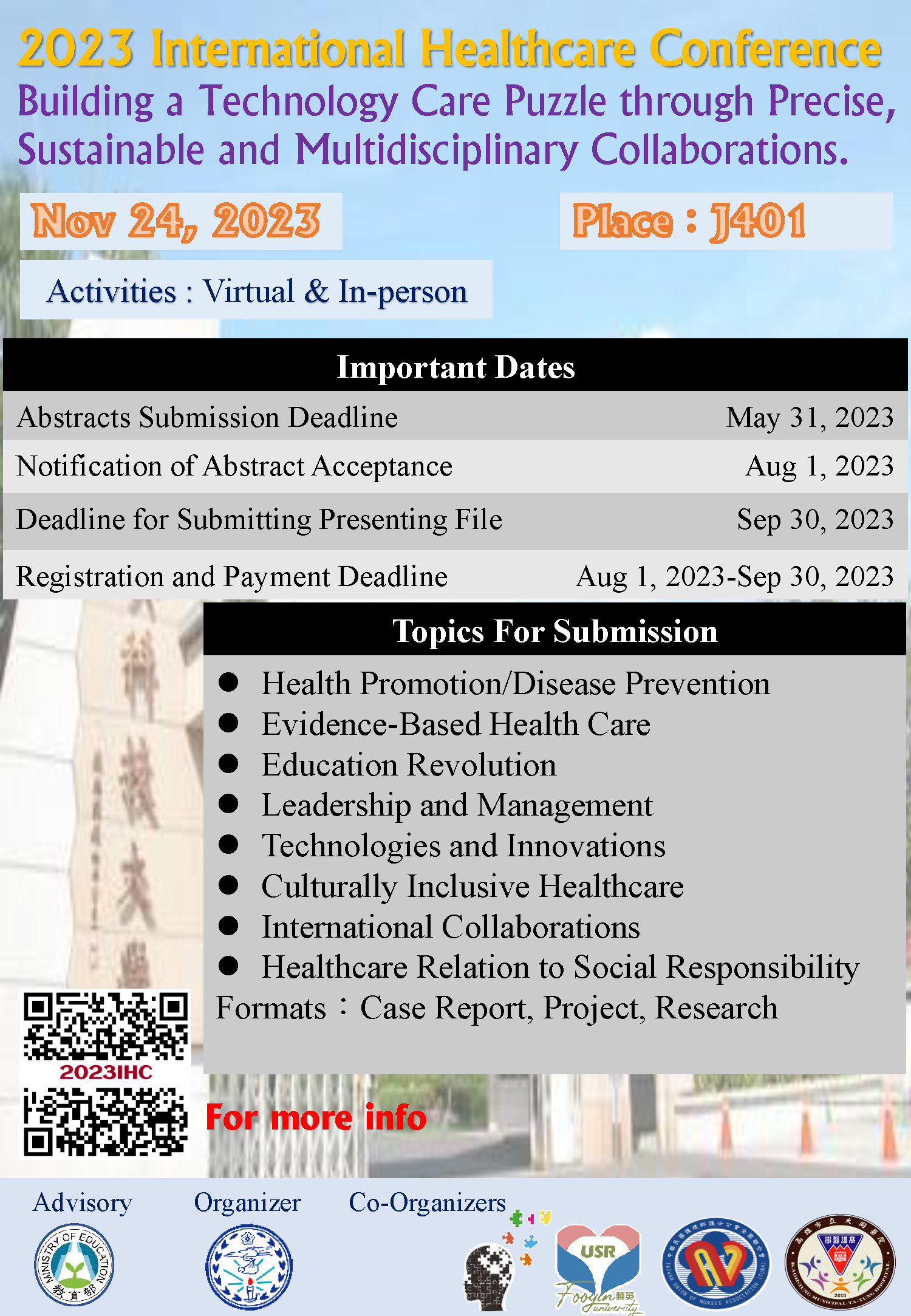 【轉知】輔英科技大學辦理『2023 International Healthcare Conference 國際健康照護研討會』與徵稿事宜