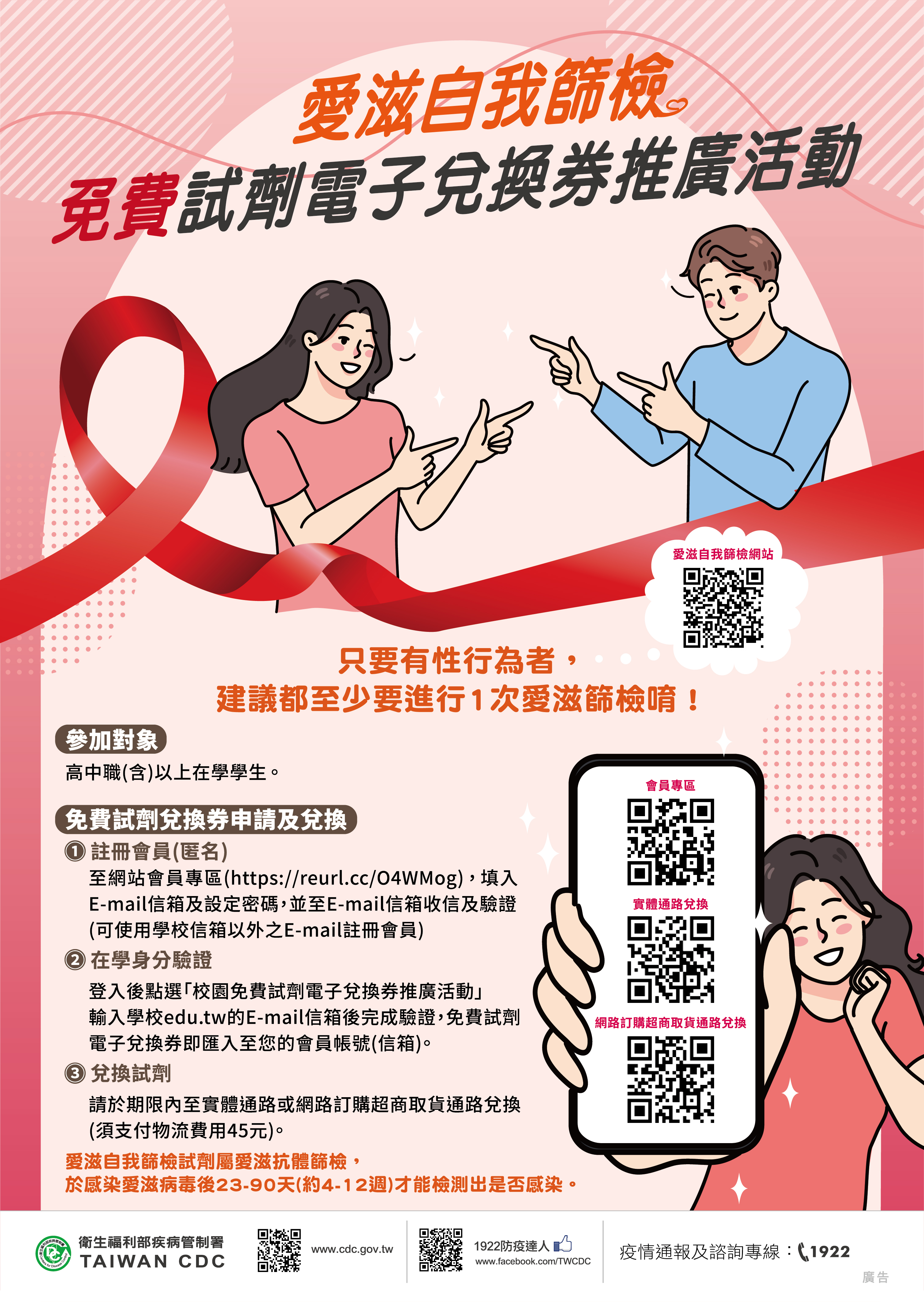 【轉知】衛生福利部疾病管制署「校園愛滋自我篩檢推廣活動」"Campus HIV Self-Screening Promotion Activity"