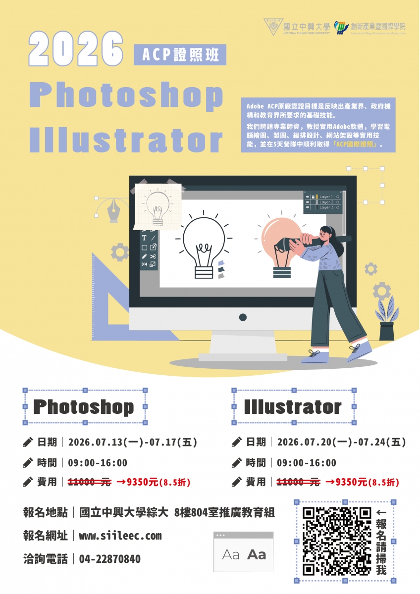 【ACP證照】7月考照班 Photoshop、Illustrator ⓃⒺⓌ