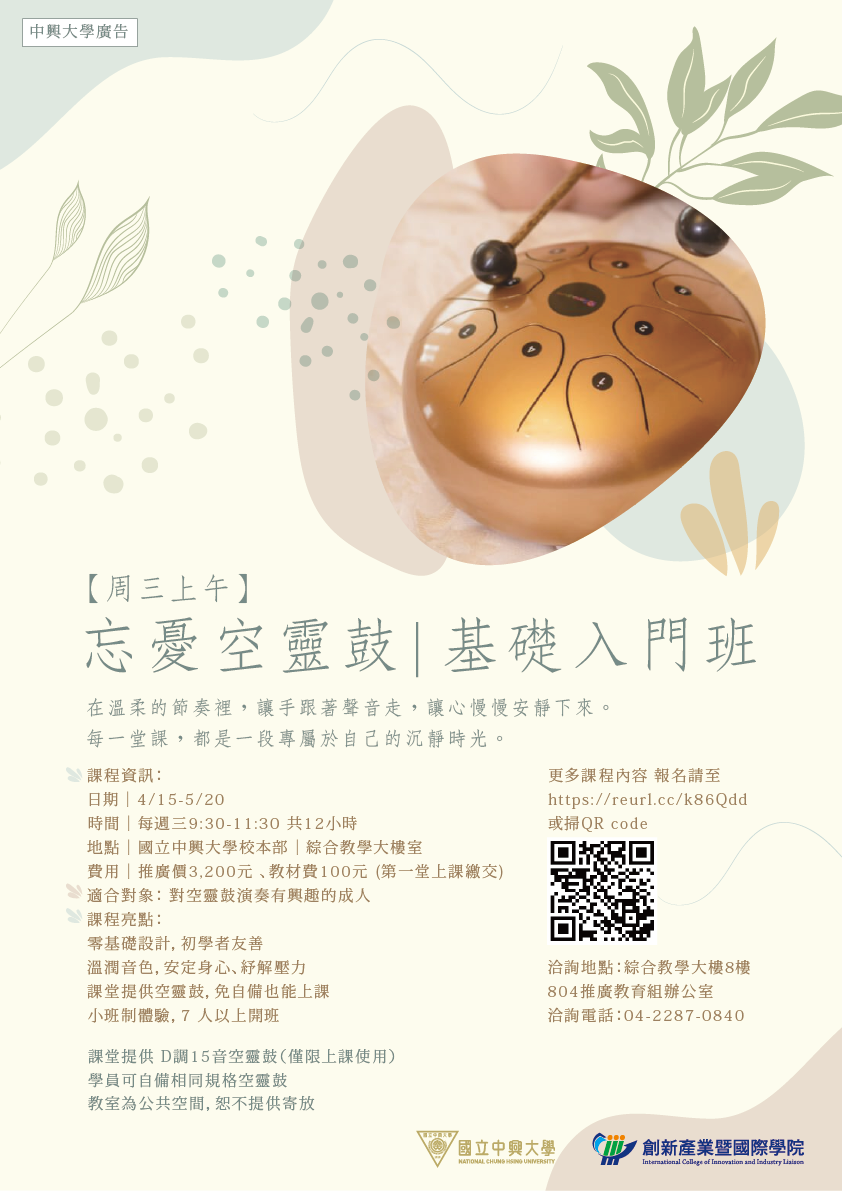 ★ 學員亦可依個人需求自備相同規格之空靈鼓上課