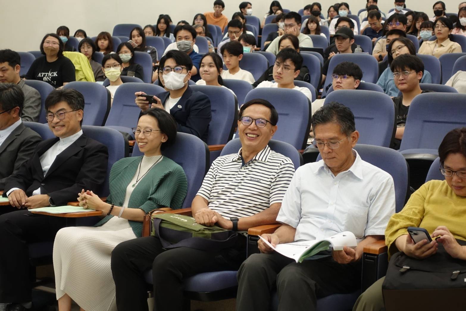 講座最後交流時間,林教授以深入的科技與法律觀點回應聽眾提問。林鈺雄教授具有批判性的演講,讓與會來賓對於科技偵查的法律授權依據及個人資料保護等人權保障議題有更深入的理解與啟發。講座最後,由中興大學法政學院院長林昱梅教授致贈紀念品、法律專業學院李惠宗教授致贈專書,感謝林鈺雄教授演講如醍醐灌頂,與眾茅塞頓開,為這全場歡聲雷動的精彩演講劃下完美的句點。