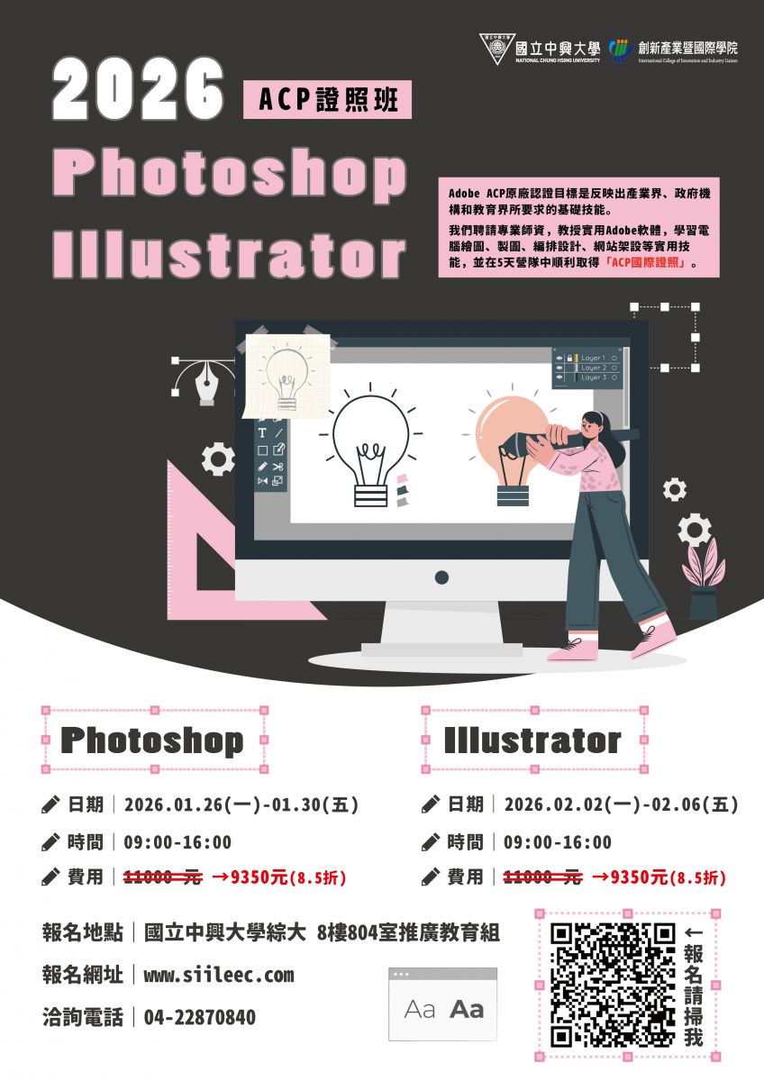 - 【ACP證照】 Illustrutor 115/02/02~02/06,週一至五 09~16點,共計30小時。