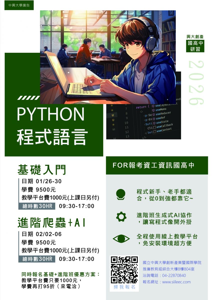 2026冬令營-國高中營隊【Python程式、ACP證照、SSE證照、AI應用】