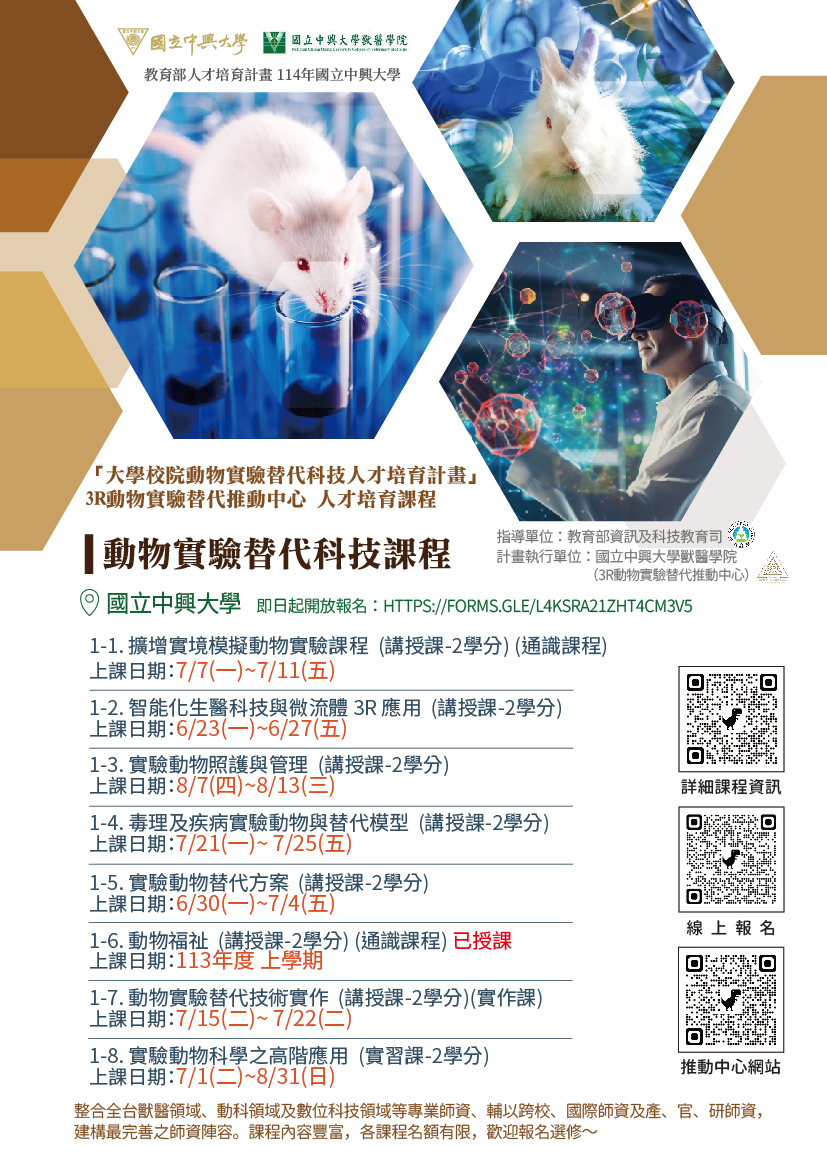 3R 動物實驗替代科技課程|國立中興大學