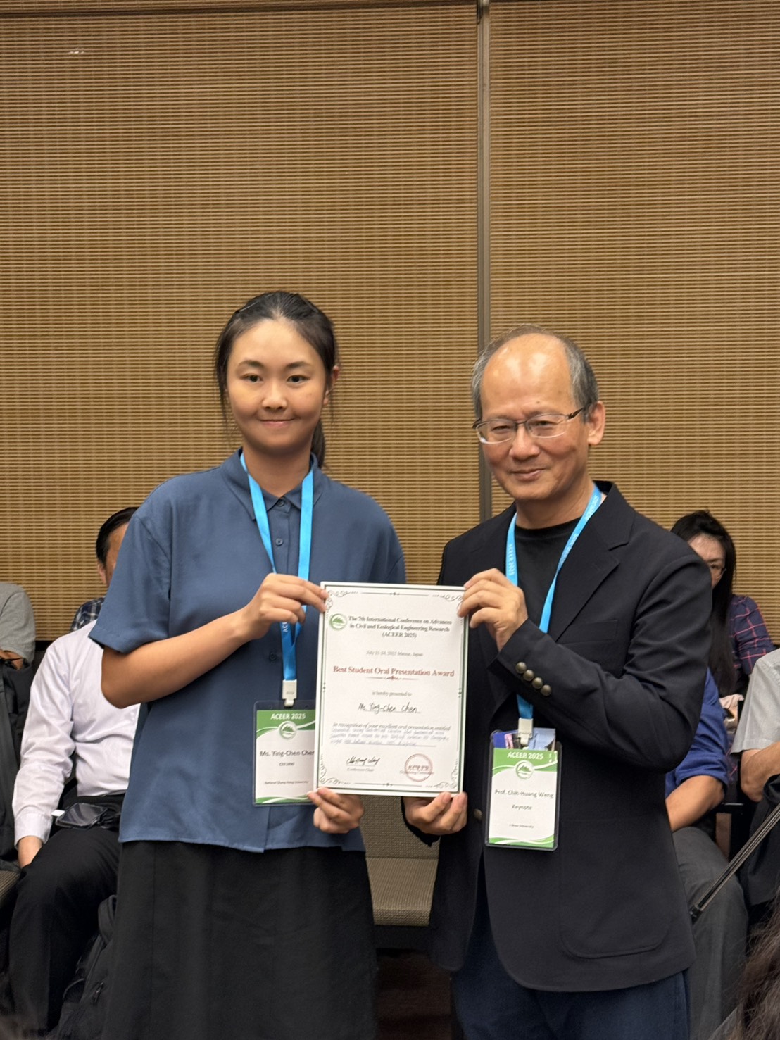 賀!林耀東終身特聘教授指導之陳映辰博士候選人榮獲The 7th International Conference on Advances in Civil and Ecological Engineering Research (ACEER 2025)最佳論文獎