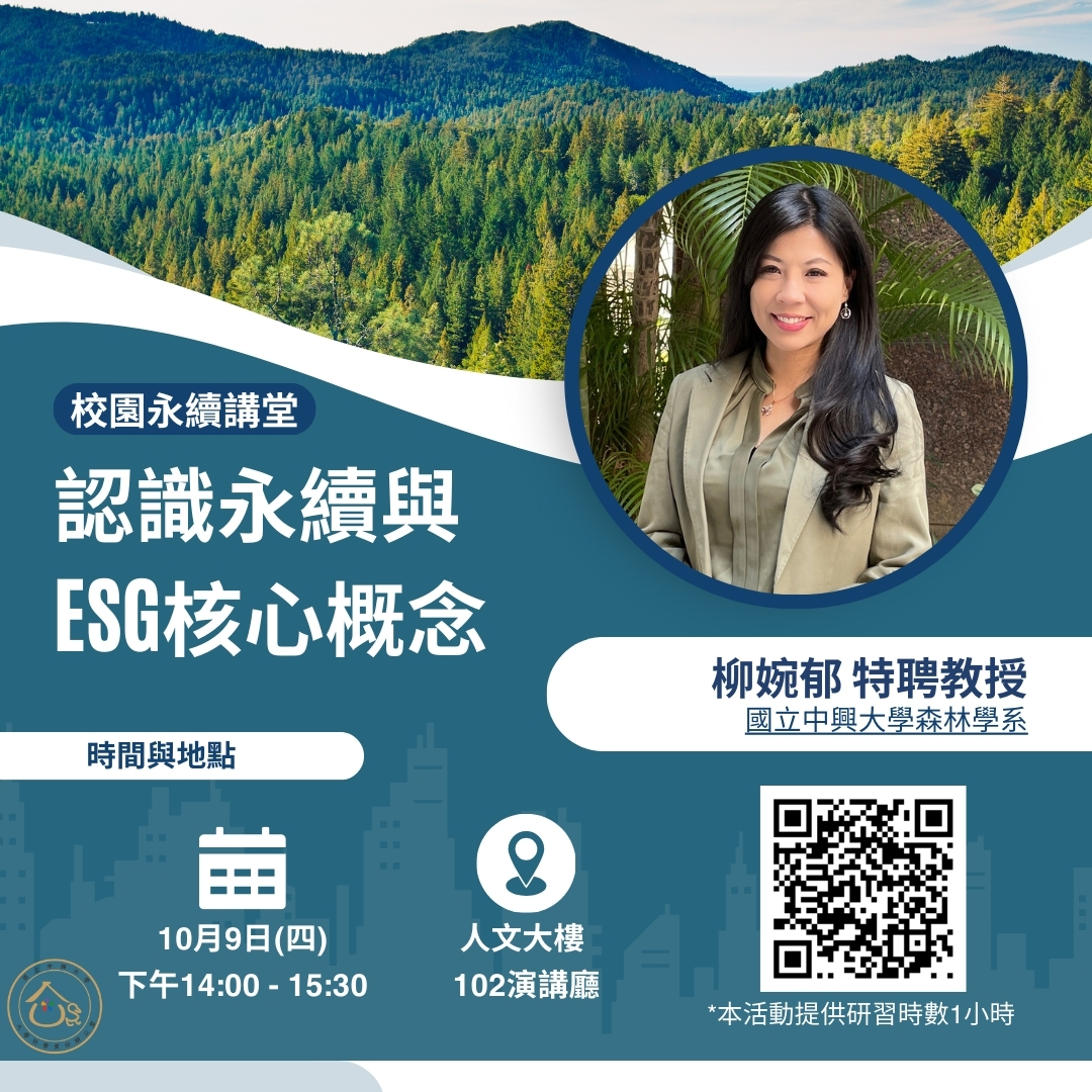 本次邀請森林系 柳婉郁 特聘教授 ,帶你從最基礎出發,深入認識「永續」與「ESG核心概念」,