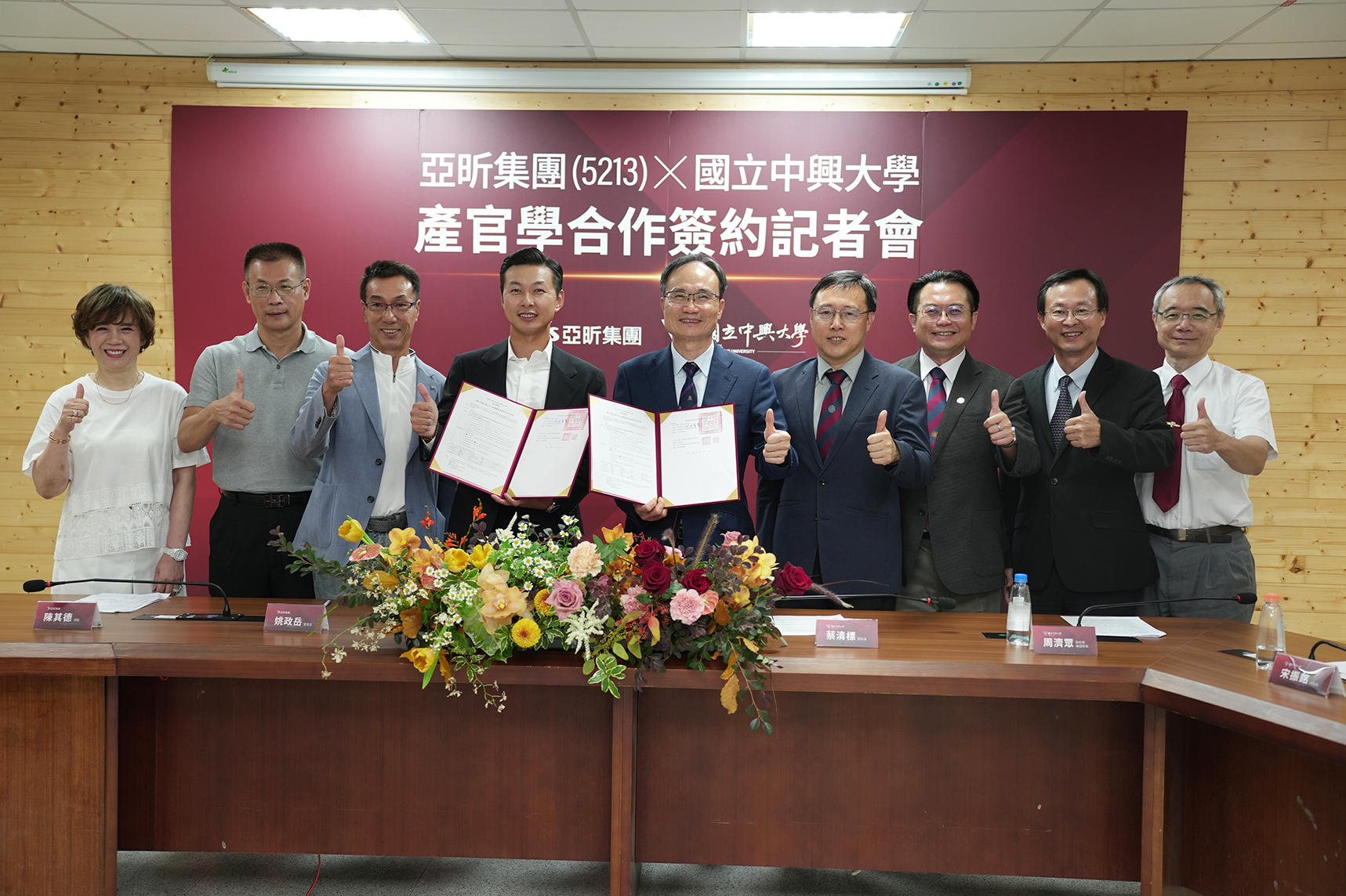 中興大學與亞昕集團10月3日舉辦產學合作啟動儀式,興大蔡清標副校長、周濟眾副校長暨國際長、工學院楊明德院長、宋振銘研發長、土木系余志鵬系主任、專班負責人熊彬成教授及多位土木系教授,與亞昕集團姚政岳董事長等人共同參與,雙方致力培育土木工程國際人才。