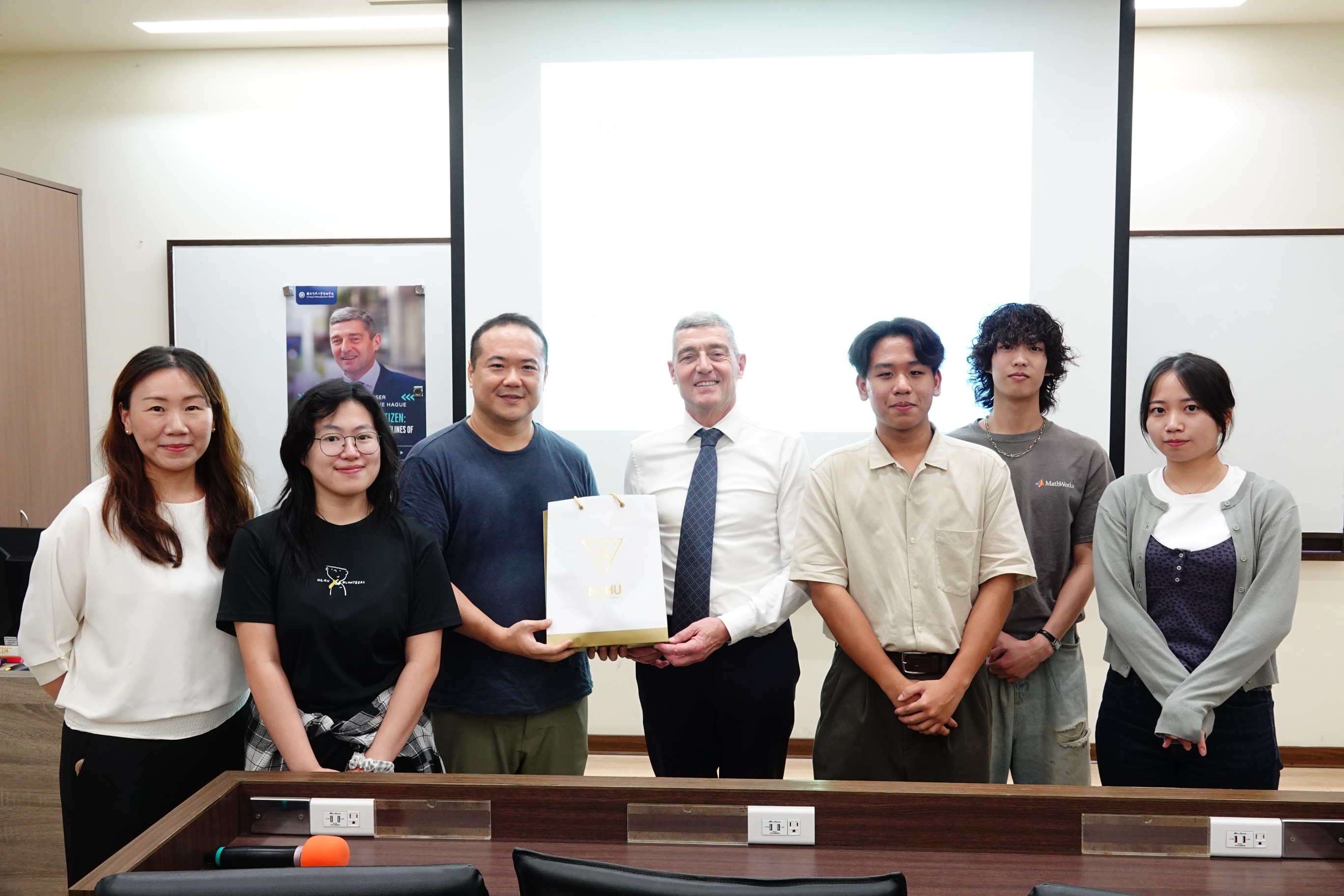 荷蘭海牙飯店管理學院院長Rogier Busser日前拜訪中興大學管理學院,發表專題演講「成為世界公民:全球高等教育第一線的職涯經驗分享 (Becoming a Global Citizen: Career Experiences at the Frontlines of Global Higher Education)」,分享其在日本生活、取得博士學位而後投身高等教育的經歷,以及對國際化教育的深刻見解。這場講座深入探討了國際意識、文化適應力與職涯發展之間的關聯,為聽眾帶來啟發性的觀點。