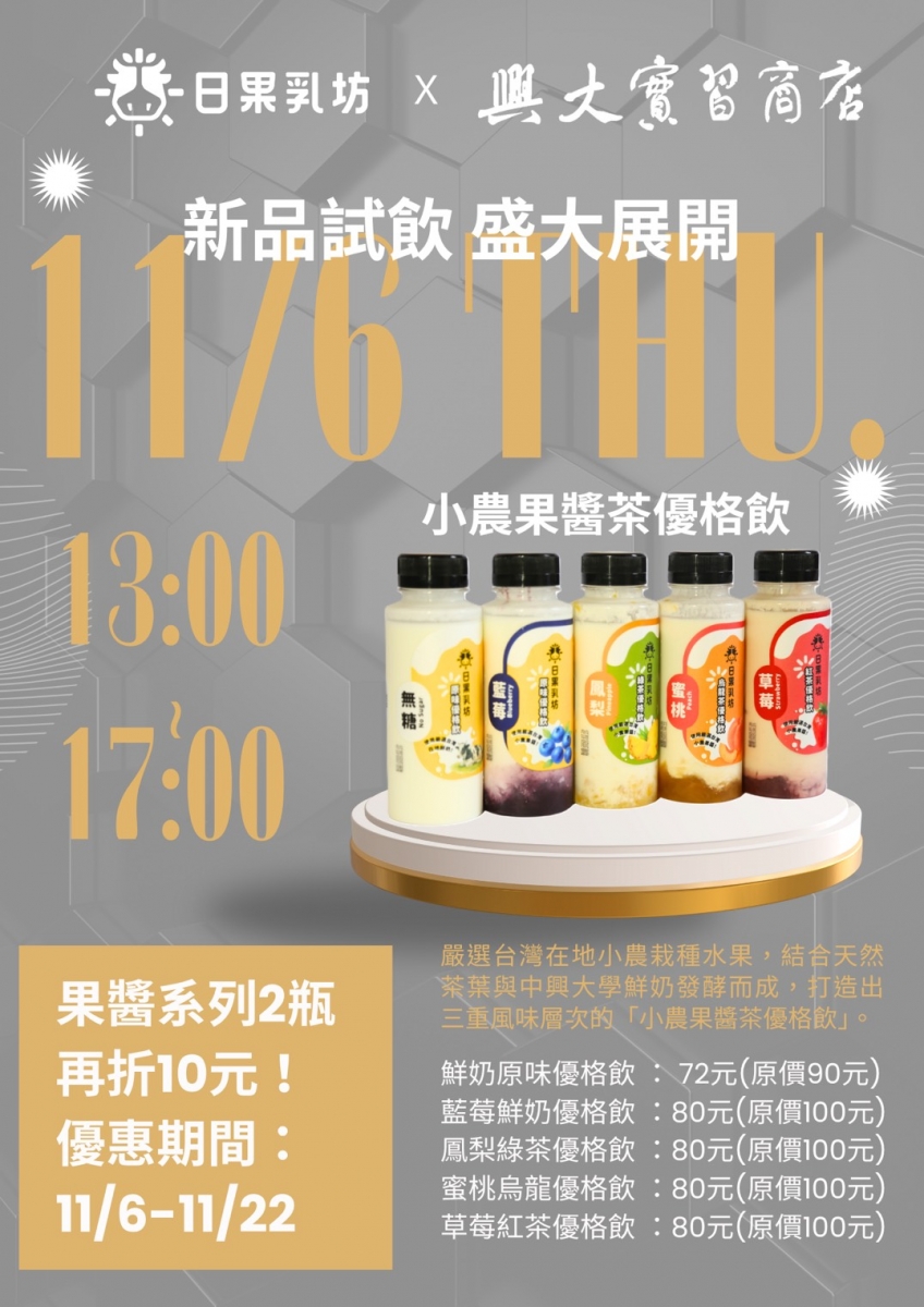 【實習商店】★小農果醬優格飲●新品試飲優惠活動★