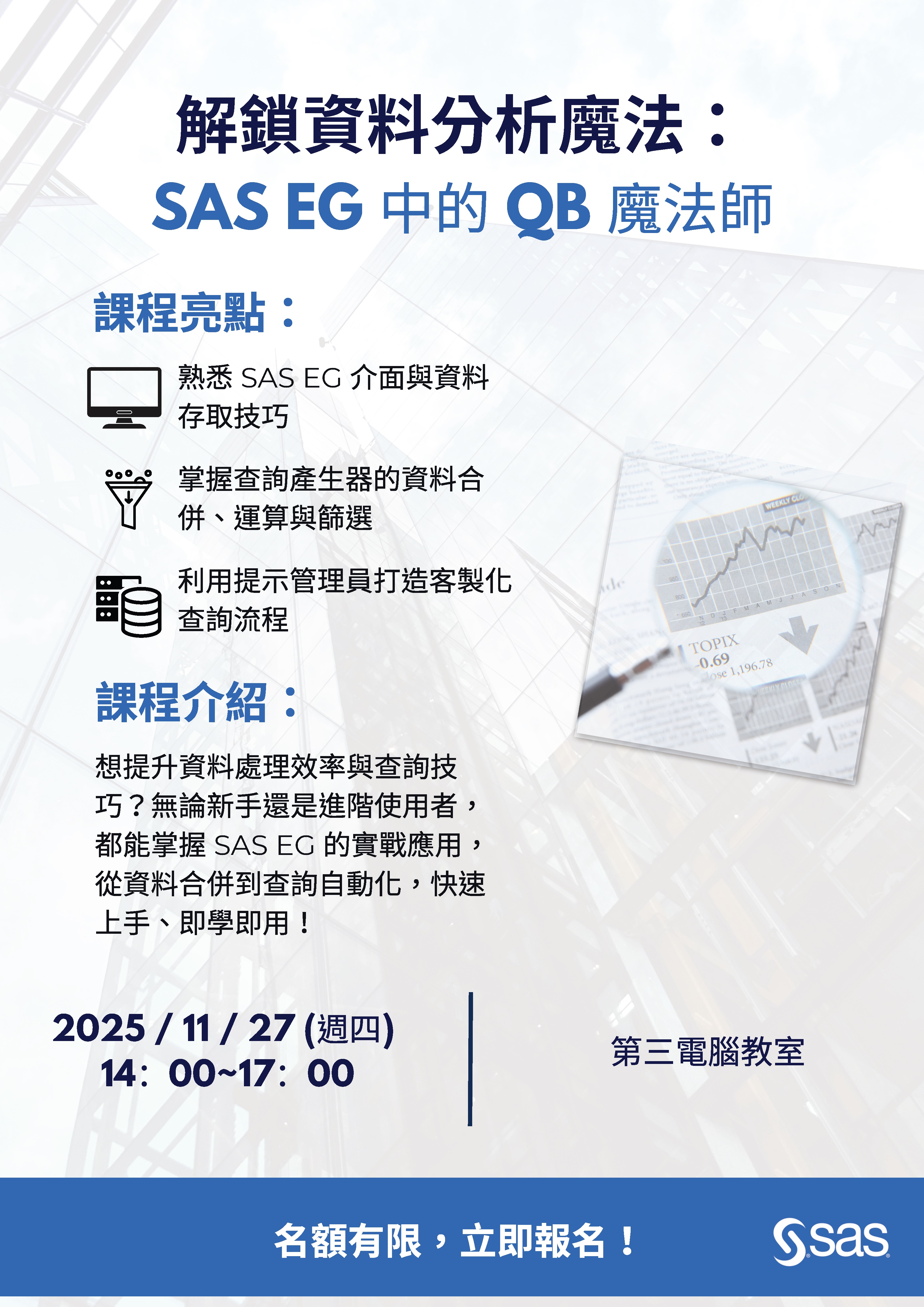 【轉知公告】SAS EG校園推廣課程