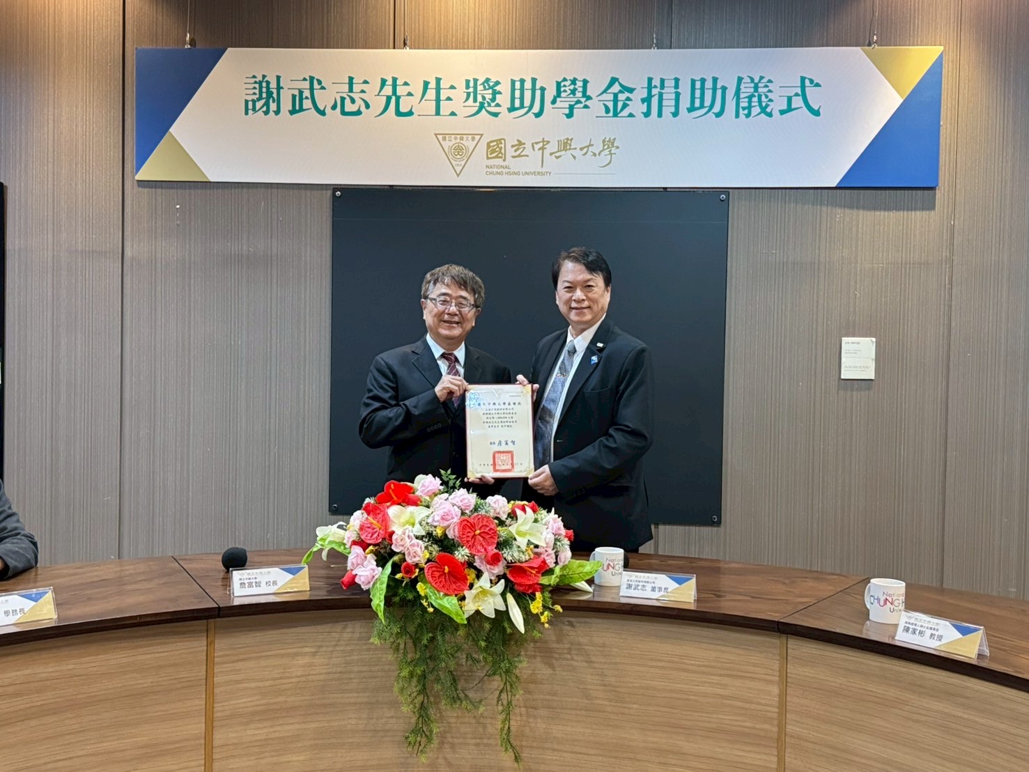 為鼓勵經濟不利學子安心向學,國立中興大學EMBA領袖組校友,同時也是現任台灣手工具工業同業公會理事長謝武志,於今(27)日返校舉辦捐贈儀式,宣布設立「謝武志先生獎助學金」,承諾每年固定捐贈新台幣100萬元,期盼透過實質的經濟支持,激發學弟妹向上的精神,協助其順利完成學業。