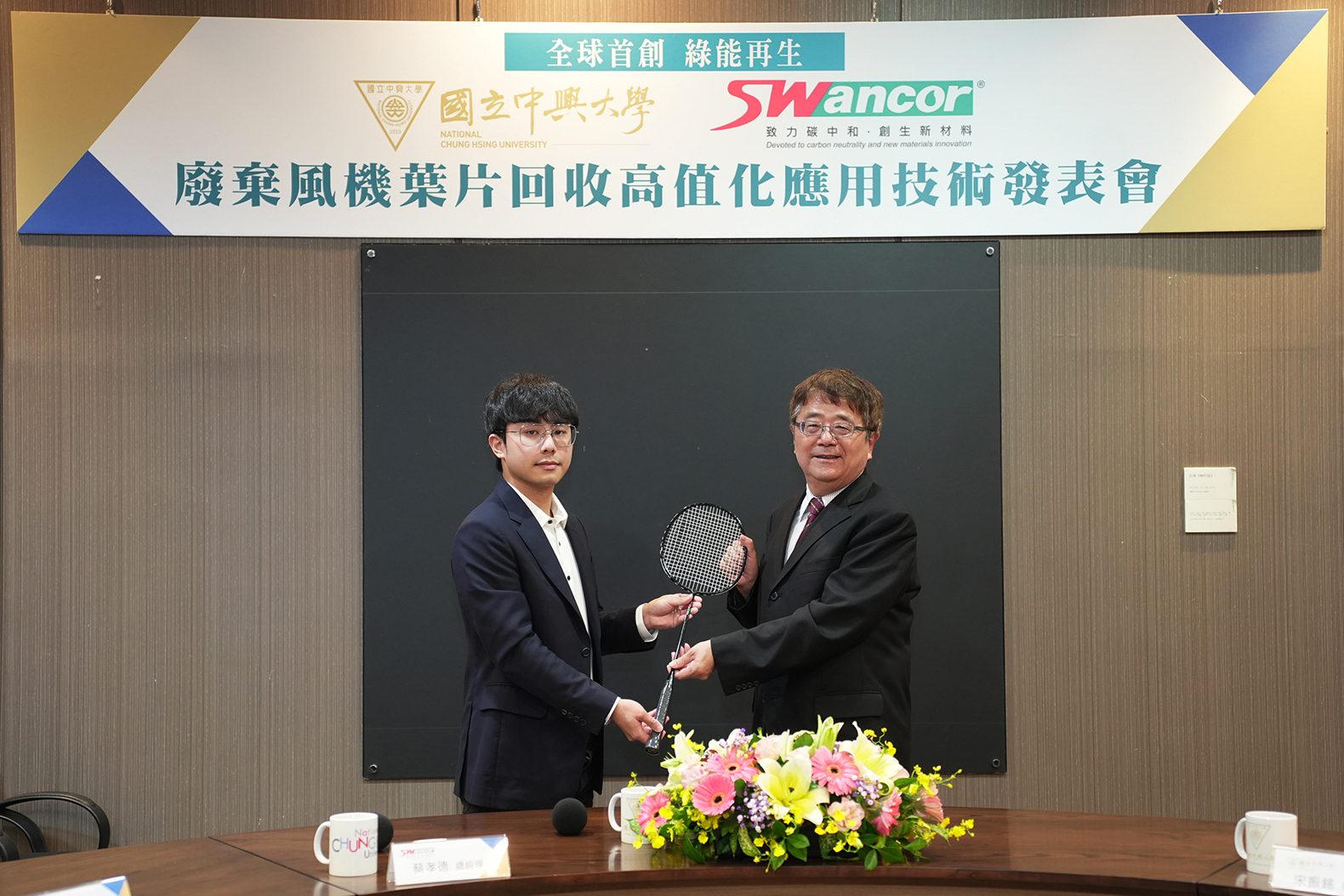 【公關中心】風機葉片再生新典範!興大與上緯合作打造全球第一支全回收碳纖維球拍