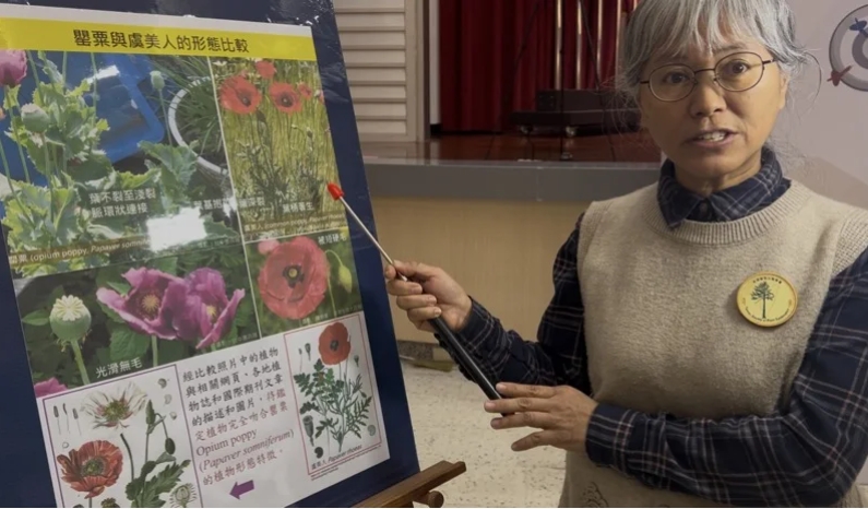 台灣植物分類學會理事長、中興大學教授許秋容在記者會現場表示,罌粟花植株光滑無毛,葉子型態從不裂至淺裂、脈環狀連接、葉基抱莖,與近親同科同屬的觀賞用的植物「虞美人」明顯不同(虞美人葉深裂、葉柄著生、被短硬毛)經台大胡哲明教授、嘉義大學呂長澤副教授與她等3人鑑定後,植物完全吻合罌粟植物形態特徵。