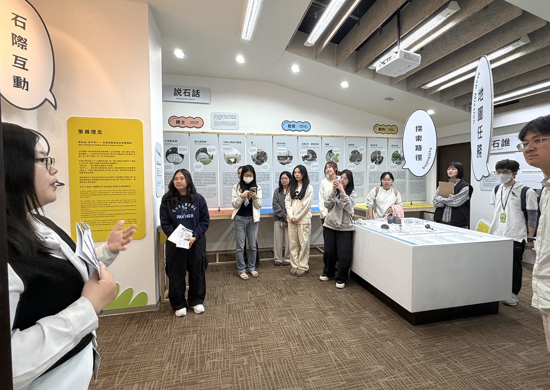 國立中興大學校史館於 12 月 22 日 正式推出全新特展 「說石話,形不行?—石碑與藝術品的校園傳說」。開展當日,校史館內吸引眾多校內師生與校外民眾前來參觀,現場氣氛熱絡。展覽開幕活動由文學院吳政憲院長、圖書館范耀中副館長及圖書資訊學研究所湯凱喻所長出席,共同為特展揭開序幕,肯定研究生團隊以創新策展形式重新詮釋校園文化資產的成果。參觀者依循展場地圖進行互動任務,透過閱讀展品故事、操作互動裝置與參與遊戲,逐步認識校園中常被忽略的石碑、雕塑與動物造型藝術。