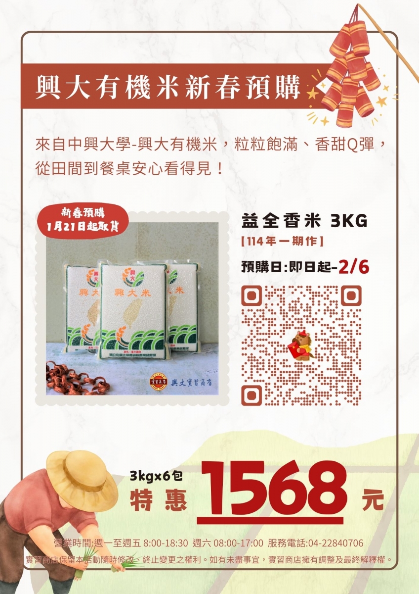 【實習商店】★新春預購●興大有機益全香米特惠★