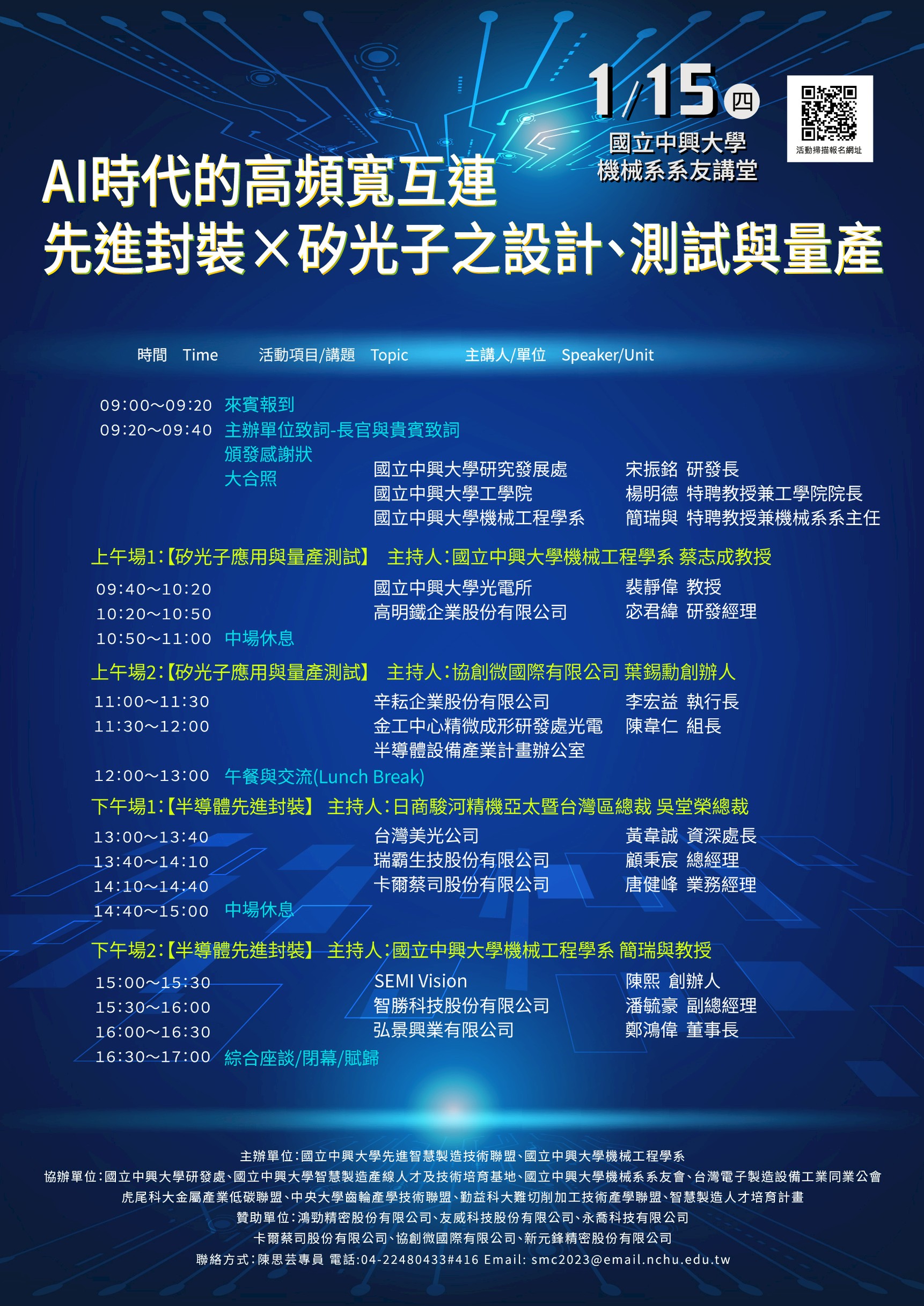 1. 論壇名稱:AI時代的高頻寬互連:先進封裝X矽光子之設計、 測試與量產。