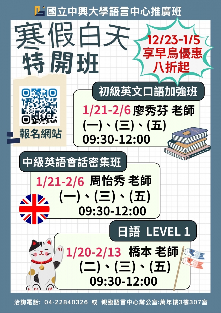 【語言中心 2026 寒假特開推廣班招生中~ 】
