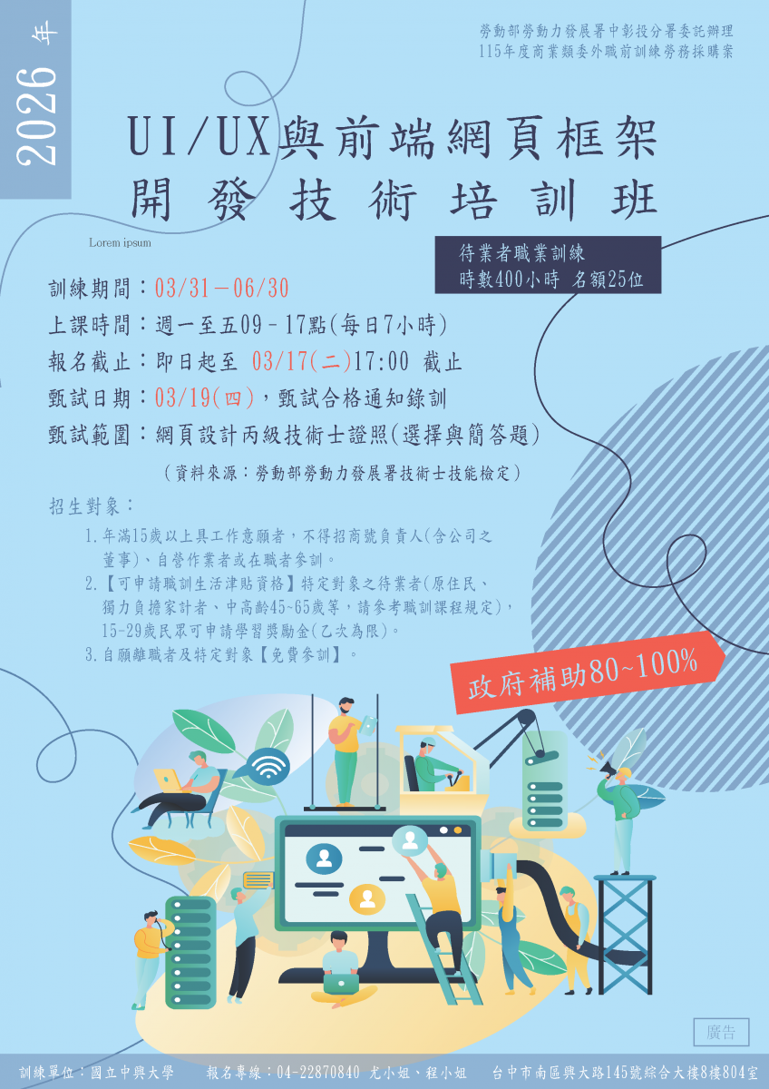 【職前訓練】UI/UX與前端網頁框架開發技術培訓班~適合待業者及轉職者報名~