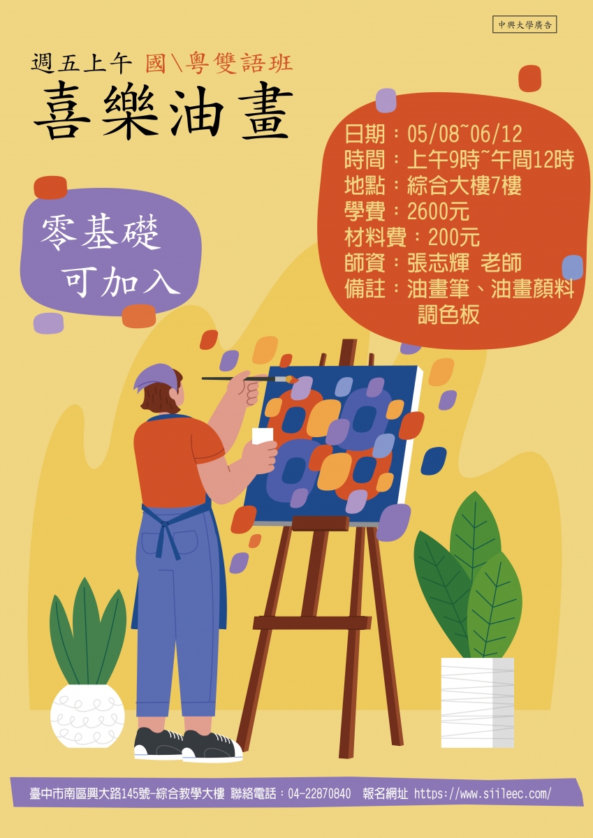 招生對象:對油畫有興趣者,零基礎者可以報名