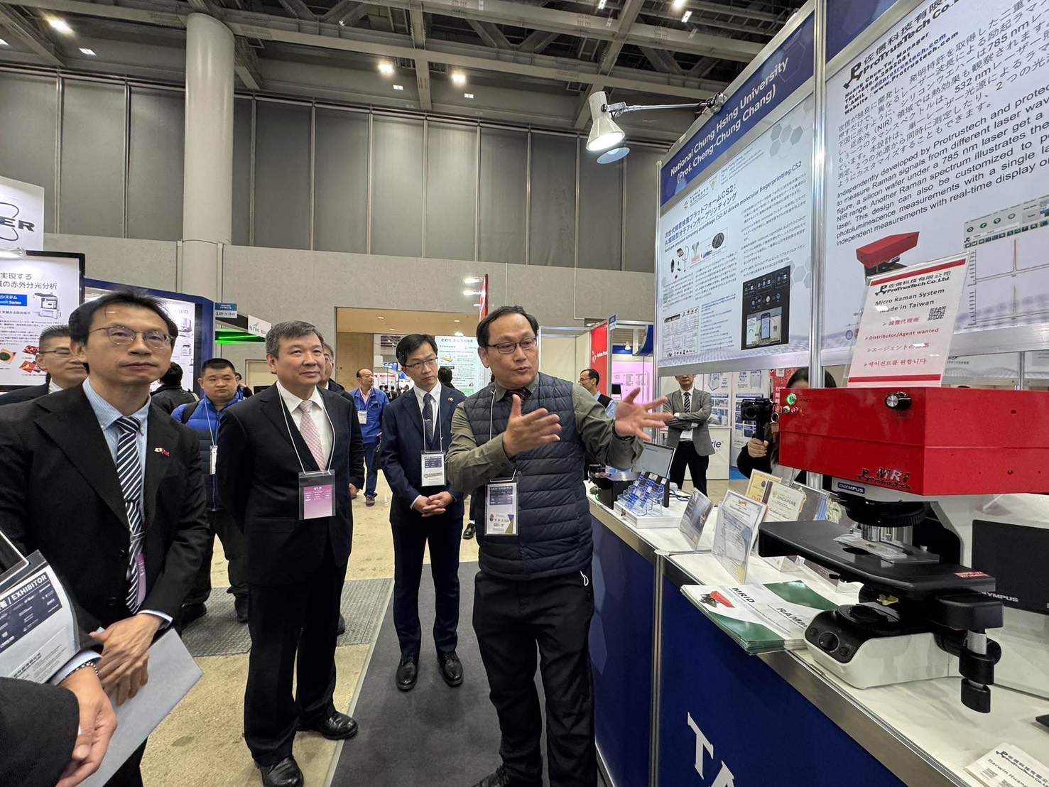 日本東京奈米展 NANOTECH 2026於1月28日至30日在東京國際展示場(Tokyo Big Sight)登場。國立中興大學攜手佐信科技股份有限公司與奈維科技股份有限公司組成產學合作奈米團隊,以整合奈米晶片、自動量測雙光源顯微與人工智慧辨識技術之「多功能拉曼快速檢測平台」參展,展現高度整合的量測與檢測技術實力,吸引眾多國際產學界人士駐足關注。
