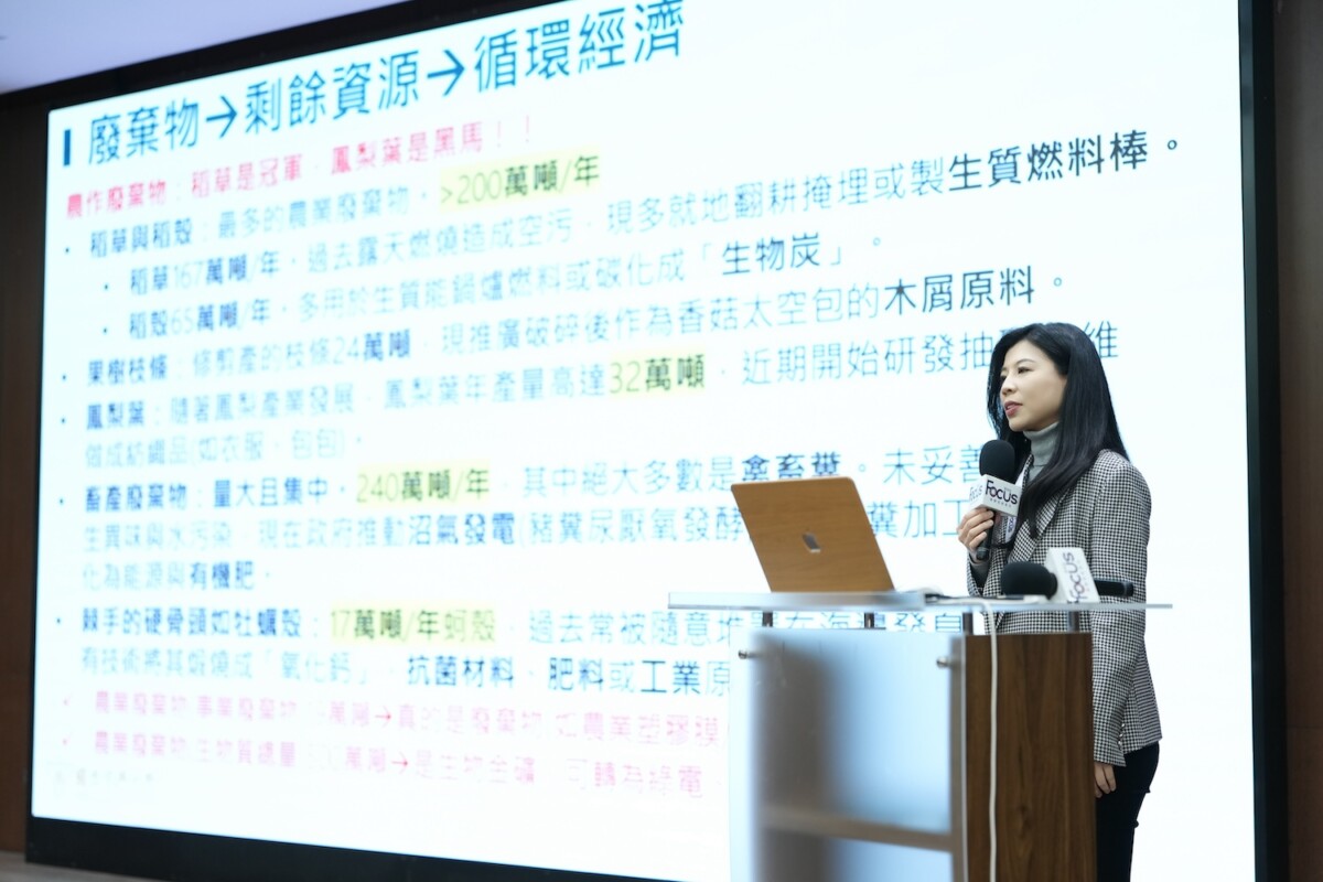 在「循環經濟策略」主題單元中,由國立臺灣大學環境工程學研究所終身特聘教授蔣本基主持。日月光半導體經理許美論首先分享半導體產業推動循環低碳的實務經驗,說明企業如何透過供應鏈整合與流程優化,打造具韌性的低碳供應網絡。接續由中山大學環境工程研究所特聘教授林淵淙,發表「生質能再利用」相關研究成果,指出生物資材轉化為再生能源,能同時回應廢棄物處理與能源需求的雙重挑戰。