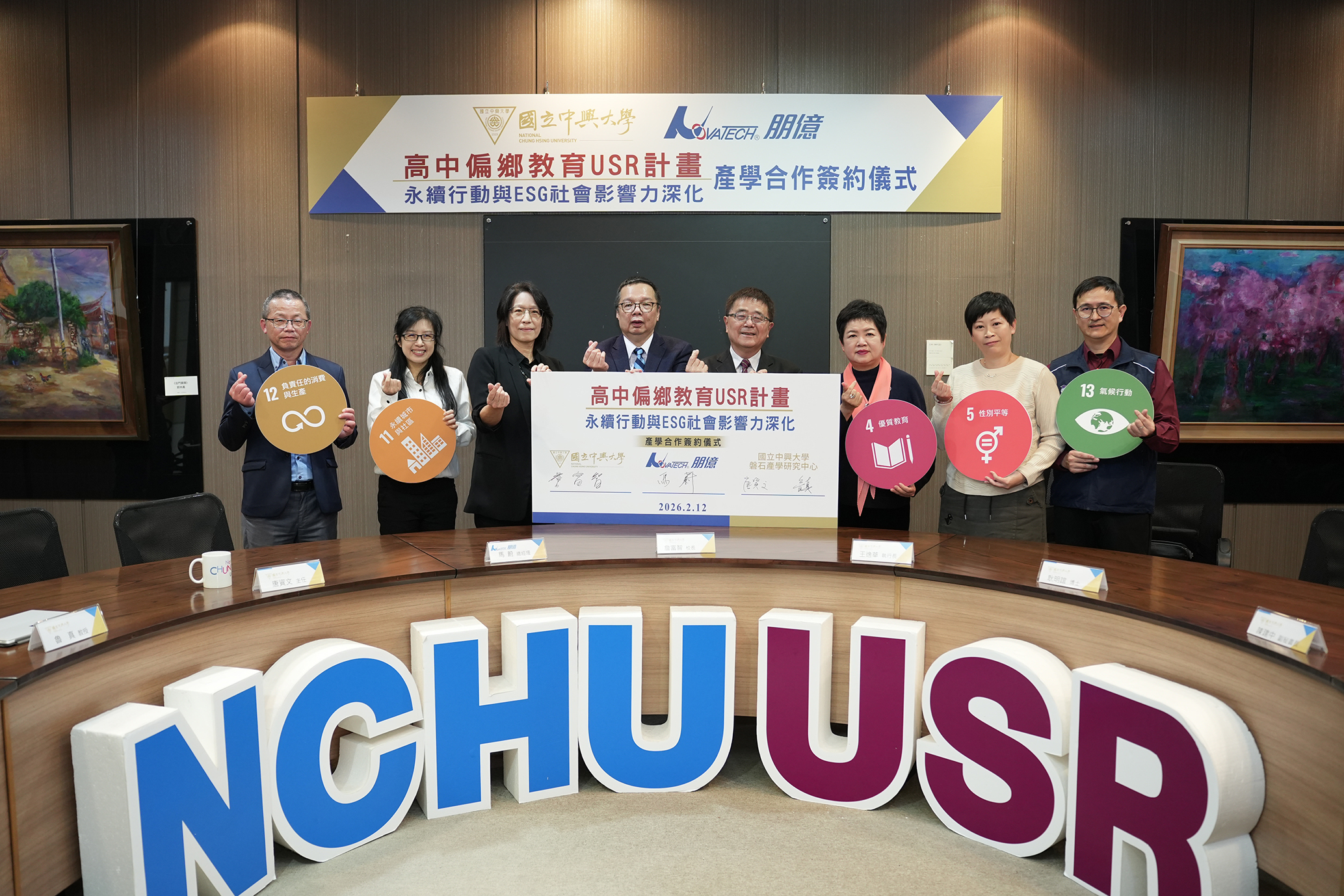 國立中興大學與朋億股份有限公司2月12日簽署產學合作計畫,攜手推動「高中偏鄉教育 USR 計畫:永續行動與 ESG 社會影響力深化」,將走入偏鄉高中舉辦教育講座,聚焦「升學與職涯規劃」與「永續素養教育」兩大主題,以教育行動落實企業永續與大學社會責任。