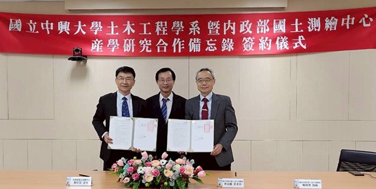 國立中興大學土木工程學系與內政部國土測繪中心於3月2日正式簽署「推廣國土測繪圖資網路服務教學應用合作協議書」,透過此次合作協議希望建構長期穩定合作關係,推動國土測繪圖資於高等教育領域的教學與研究應用。