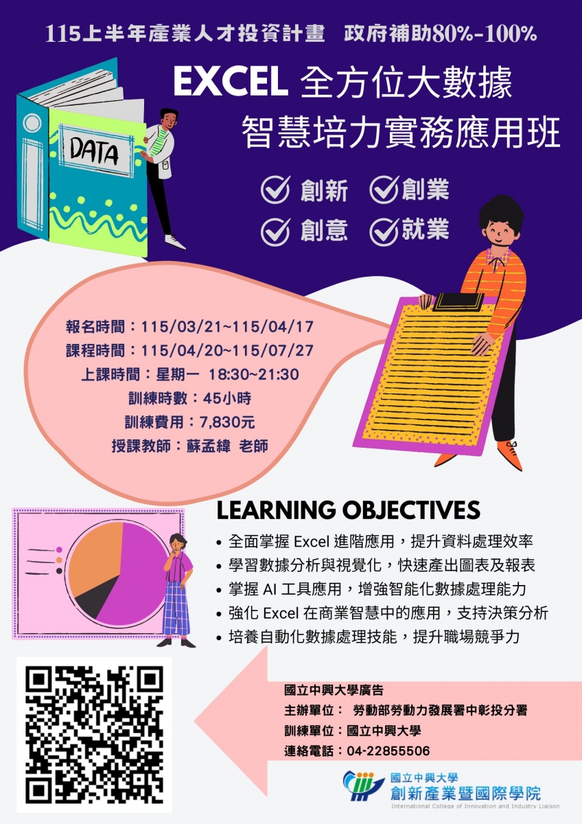 政府補助80%~100%--產業人才投資方案【Excel全方位大數據智慧實務應用班】