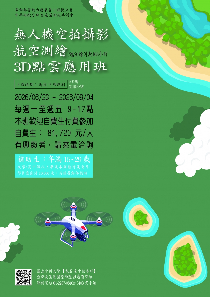 【2026上年產業新尖兵計畫X興大臺中校區X興大南投分部】全端工程師、無人機測繪、Blender 3D工業製圖(都免學費、南投提供自費住宿)