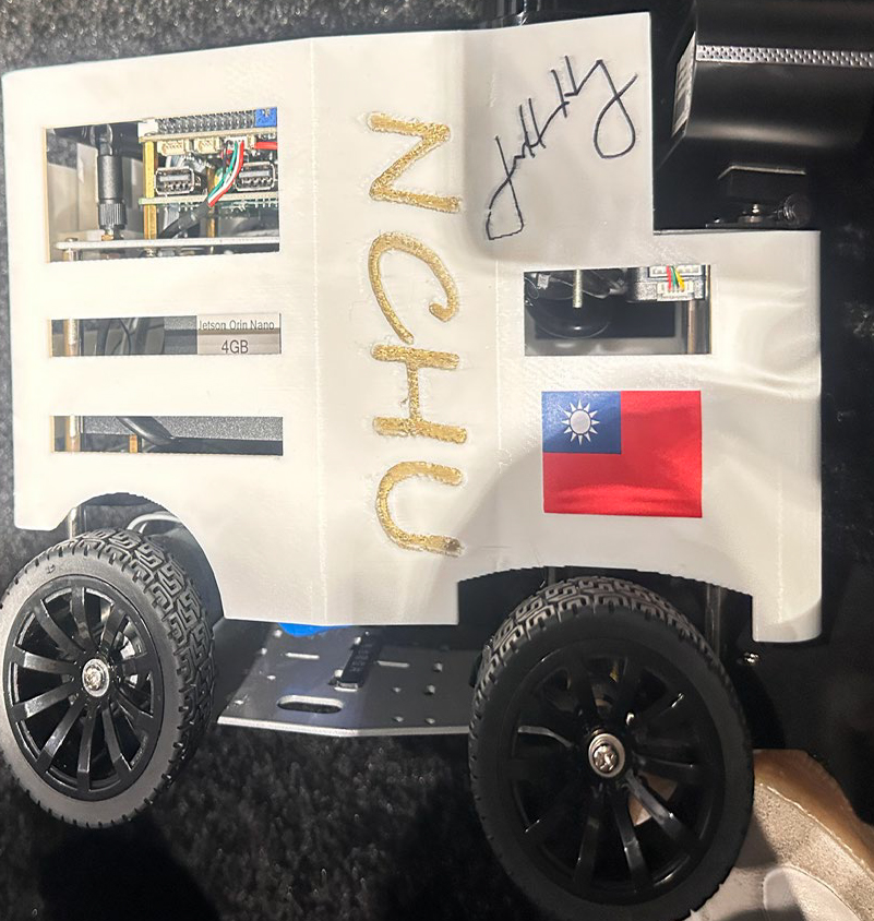 展會期間,NVIDIA 執行長黃仁勳親自於團隊研發的阿克曼小車上簽名,對其技術表現展現高度興趣。團隊表示,這不僅是對研究成果的肯定,也為學生帶來極大鼓舞,更與黃仁勳所提出的「物理AI」發展願景不謀而合。