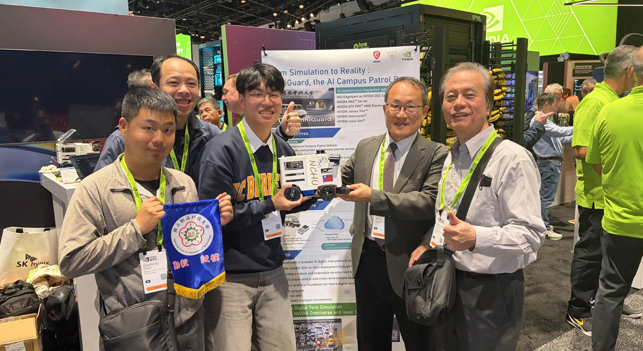 全球人工智慧指標盛會NVIDIA GTC 2026 (GPU Technology Conference) 3月中於美國加州聖荷西盛大登場,匯聚數千名開發人員、科學家與企業領袖與會,共同探討正重塑各行各業的突破性進展—從「物理 AI(Physical AI)」、「AI 工廠」到「代理 AI(Agentic AI)」與先進推論技術。國立中興大學機械工程學系自駕車團隊此次受邀參展,攜手微星科技(MSI)展示「校園數位孿生巡檢系統」,展現AI與機器人整合應用成果。