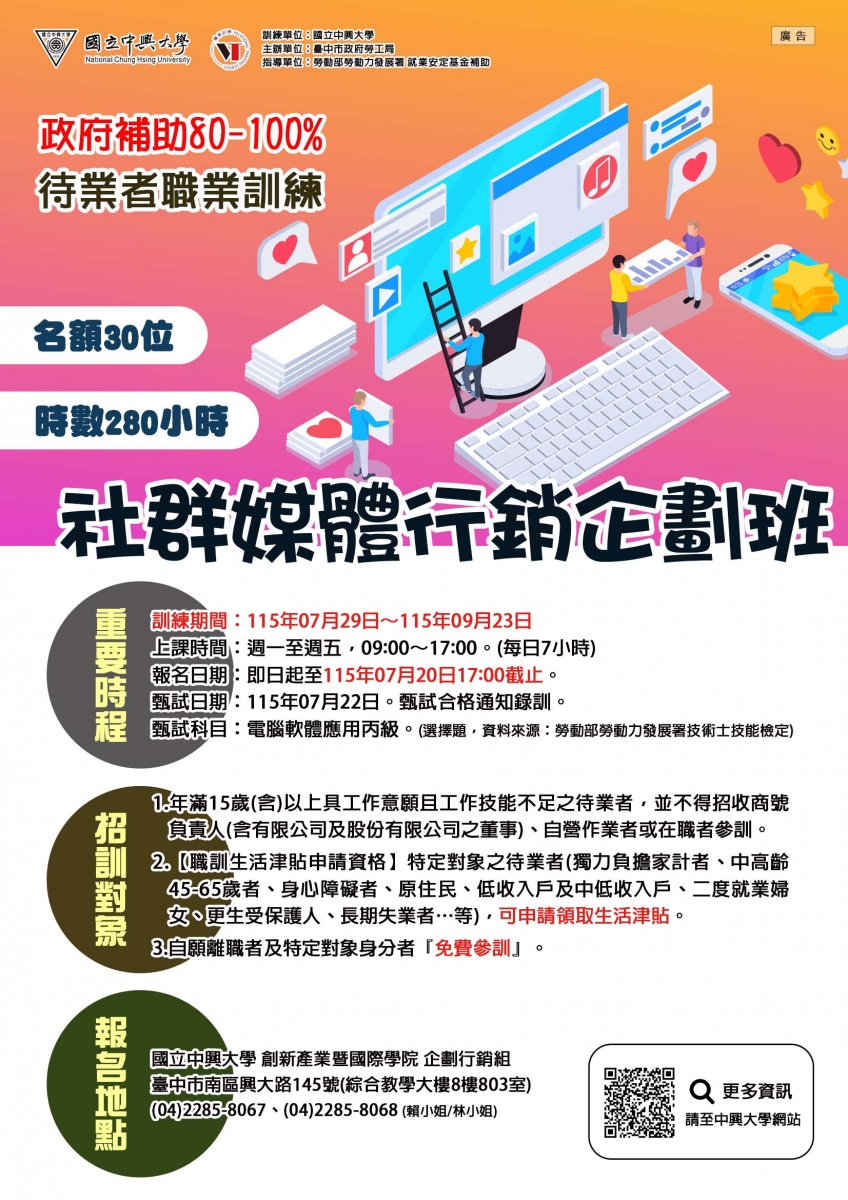 【職前訓練】社群媒體行銷企劃班~適合待業者及轉職者報名~